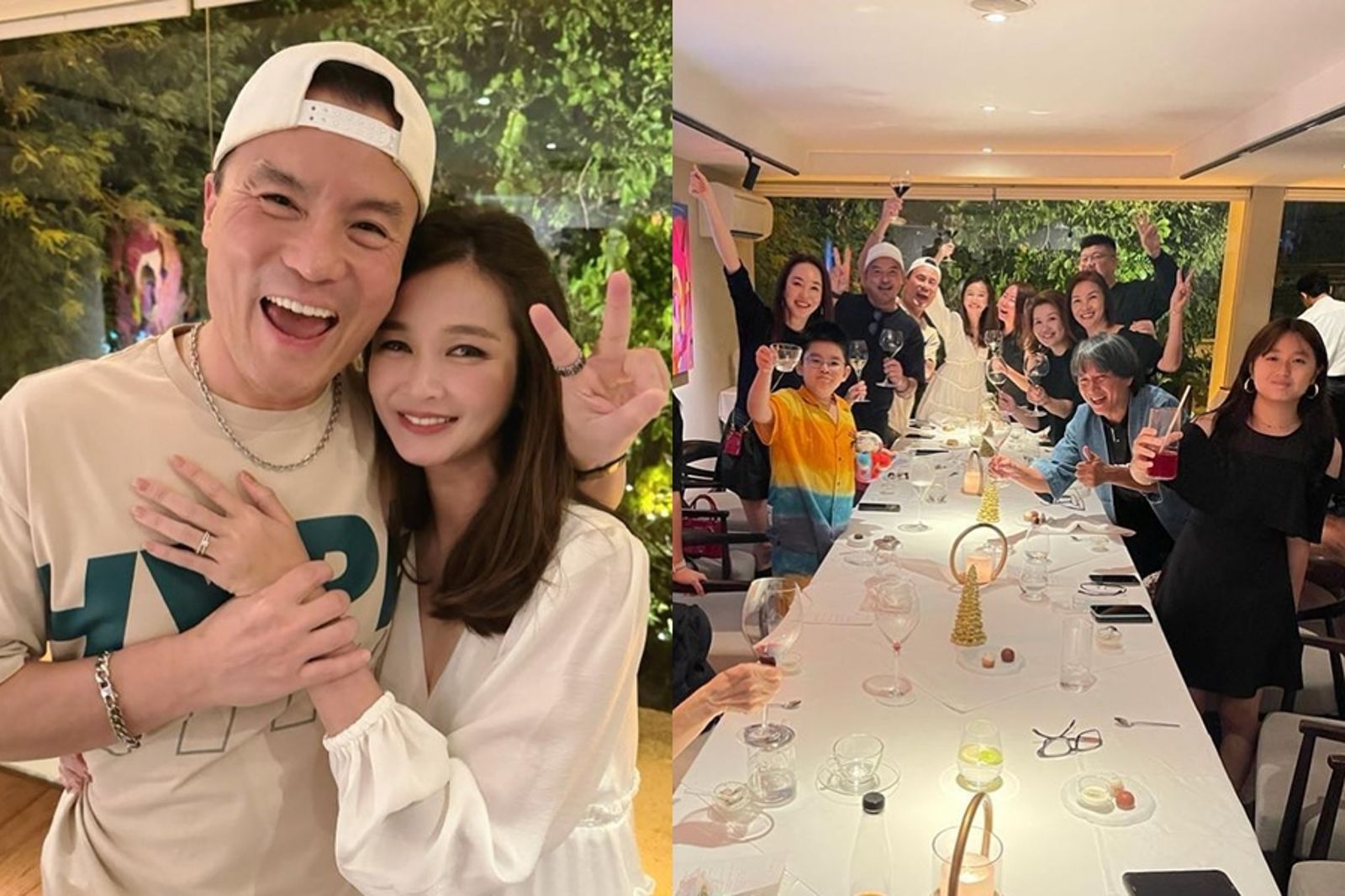 照片中可見,李銘忠在餐廳向女友單膝下跪求婚,女友笑得十分燦爛,兩人也開心擁吻,一旁李銘忠的哥哥李銘順和范文芳夫妻也在場見證。