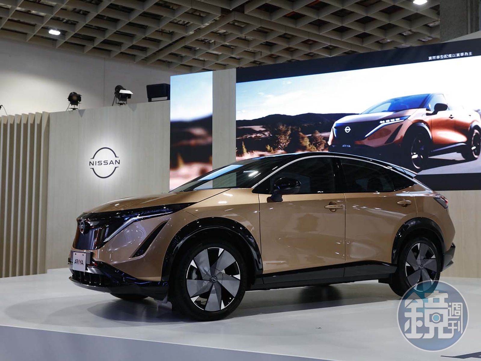ARIYA車身尺寸屬於C-Segment Coupe SUV,外觀設計上還是依循著 V-Motion 的核心理念,但更強調「永恆的日本傳統設計」,車頭採用全新的日產廠徽,底色更以日本傳統「組子工藝」圖案組成,搭配扁平的LED大燈,再運用低矮的車頂線條搭配上大尺寸輪圈,讓 ARIYA完美呈現出跑旅的精神。
