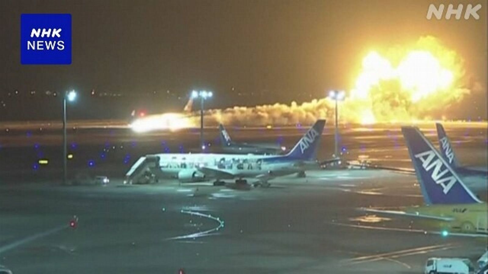 事發時,海保機的部分機體已經在跑道上,造成日航降落後與其相撞。(翻自NHK畫面)更新時間|2024.01.03 17:48 臺北時間