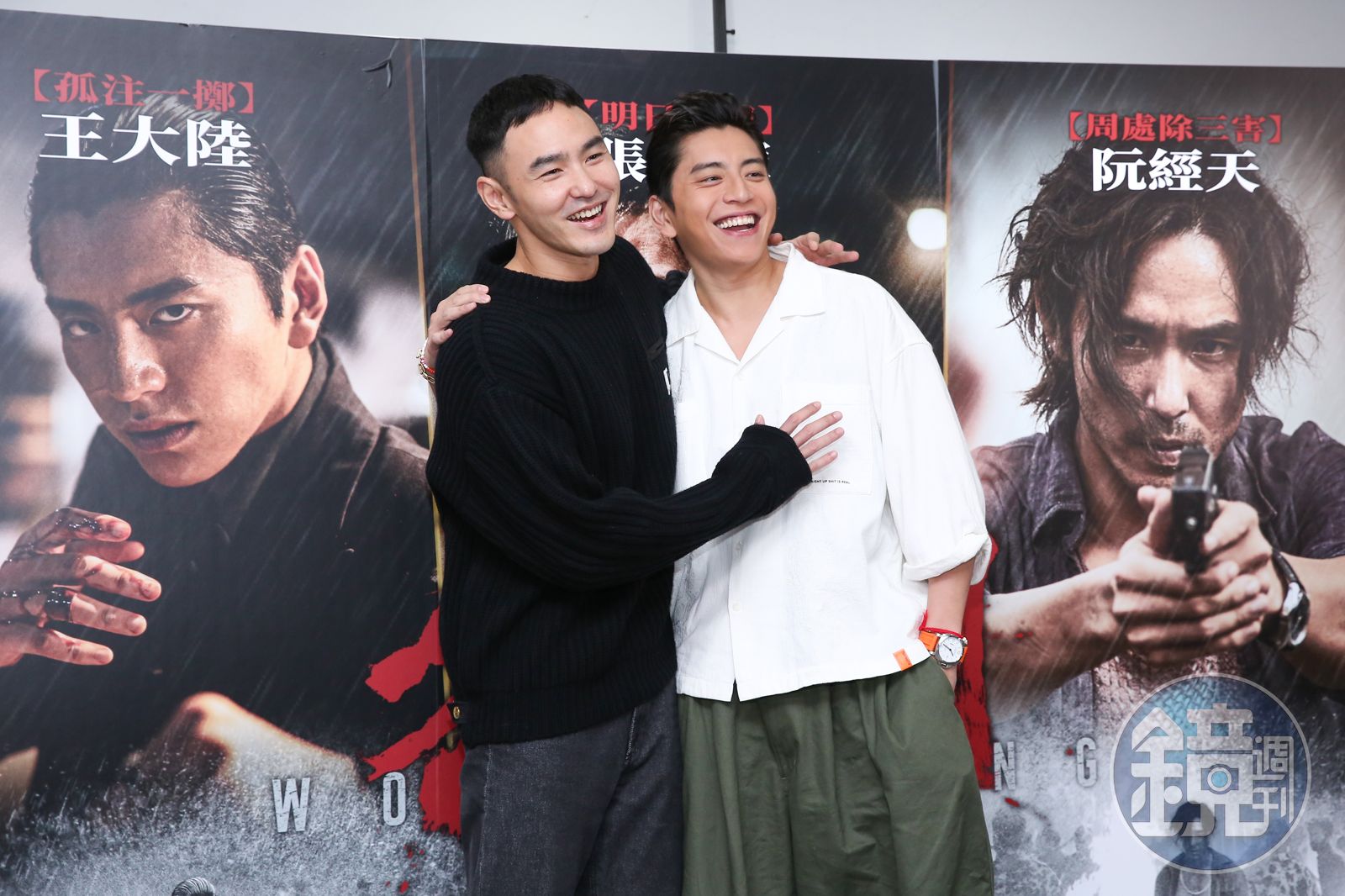 回想起對對方的第一印象,阮經天稱讚王大陸「帥得很鋒利」,第一天進組他見到王大陸在拍一場痛毆對方的戲,看到他很專心在拍,就覺得和《我的少女時代》的他有很大不同;王大陸則笑稱一開始有點怕阮經天,「不好搞的樣子」,後來發現對方很真誠;片中3位男主角他的資歷最淺、年齡最小,且張家輝與阮經天都是影帝,尤其他與阮經天片中初見面就在嗆聲,自己接演時很害怕壓力也很大。王大陸說,他當時心想最重要是「努力ㄍㄧㄥ上去」、「怎樣做到不丟人」,還好「哥哥們」都很幫他,自己也愈發進入狀況。