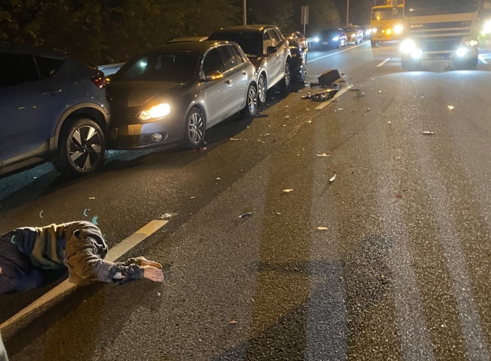 國三南下香山路段4日晚間發生重大車禍,有民眾遭撞倒在車道。(翻攝記者爆料網)發布時間:2024.01.04 19:32 臺北時間