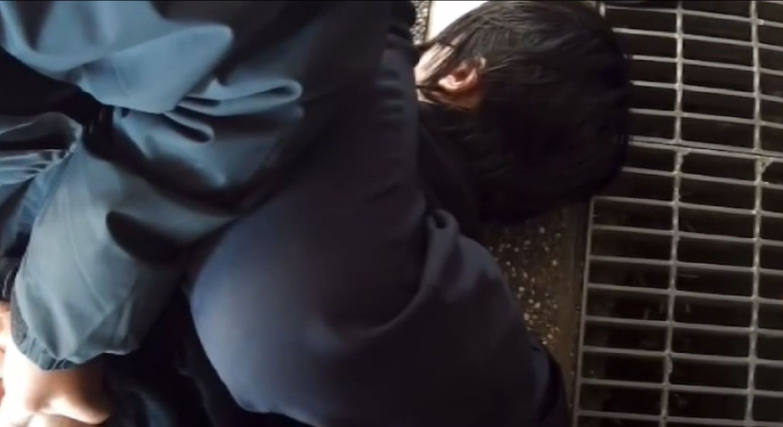 謝震廷5日涉嫌持刀砍殺前女友,遭到警方壓制在地。(讀者提供)發布時間:2024.01.05 18:06 臺北時間