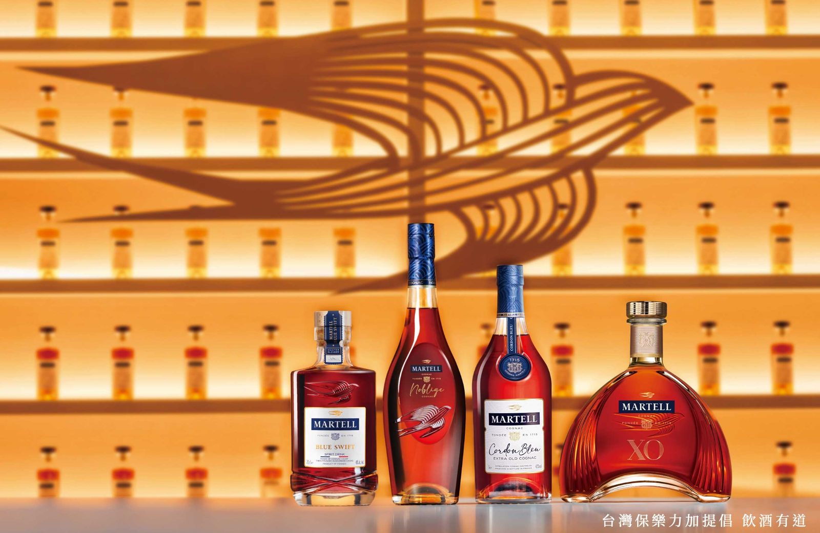 法國干邑白蘭地的頂級名品馬爹利,1715年由貴族尚.馬爹利(Jean Martell)創立,經典標誌—飛燕,象徵著馬爹利大膽挑戰傳統,從不停止創新的自由精神。