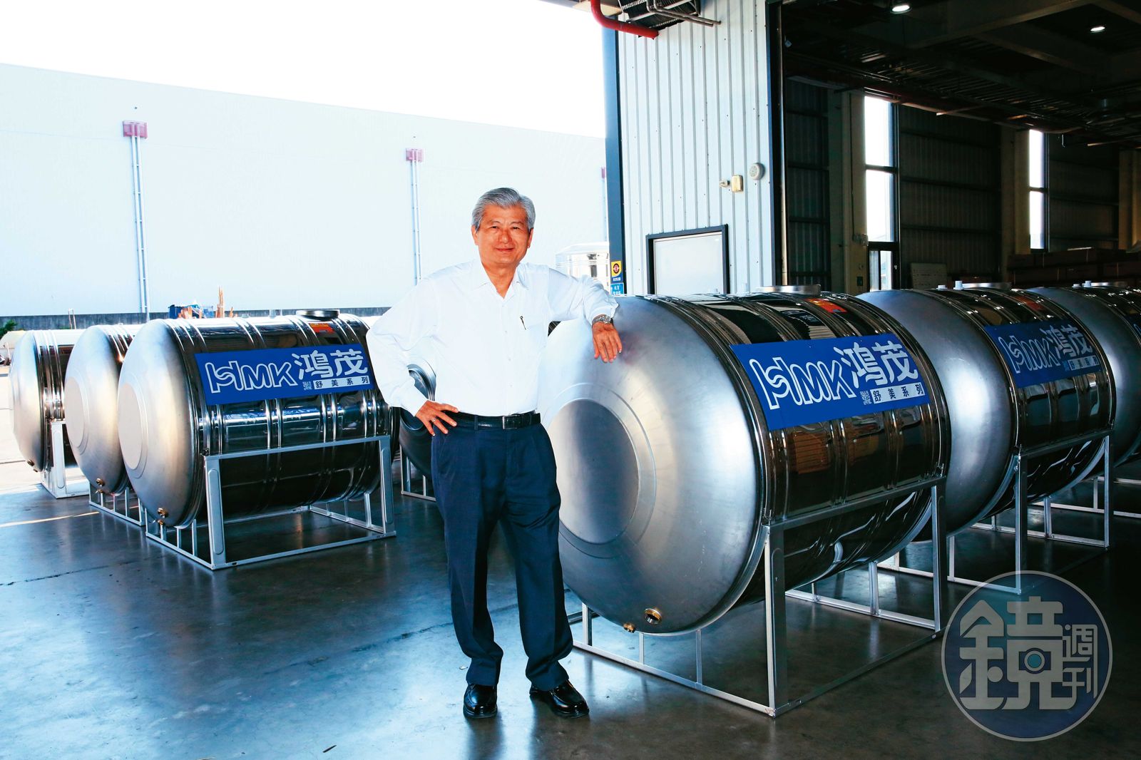 進入位於雲林斗南、才剛砸下12億元啟用的鴻茂工業新廠辦,眼神立即被數量龐大且壯觀、俗稱白鐵的大大小小不鏽鋼水塔海給震懾住,這各式各樣家庭、大樓、飯店、廠房用的不鏽鋼水塔,不只是鴻茂的起家產品之一,更肩負了企業2至3成的營業額。