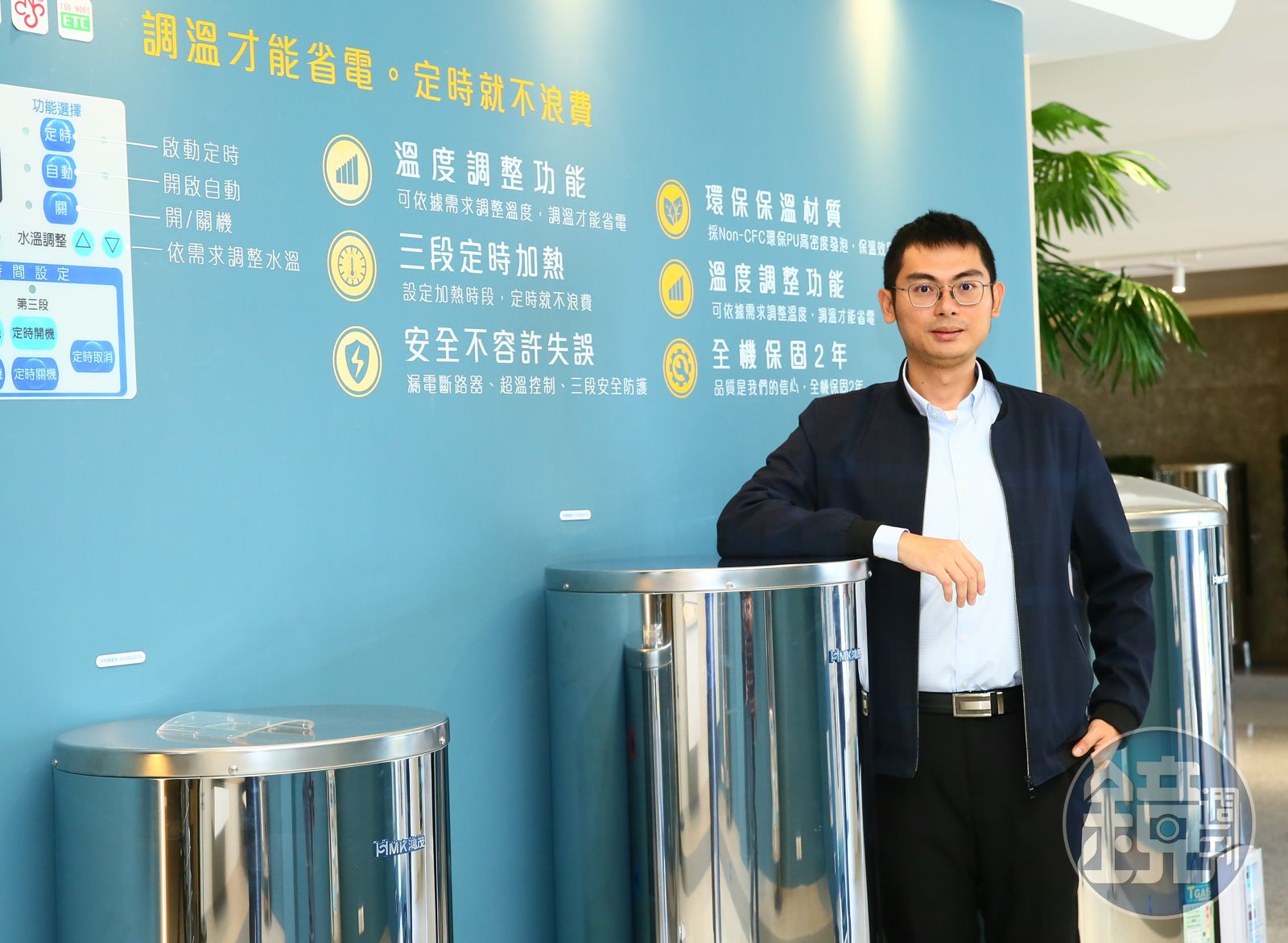 「儲能式電熱水器跟瓦斯熱水器、瞬熱型電熱水器,要用時再燒水的『燒水壺』概念不一樣,儲能式電熱水器比較像是熱水瓶,有保溫內膽,加熱水溫若設定在45度C的話,一整天下來頂多降4-6度。」王浩政繼續接著說:「電熱水器其實只有加熱時才會耗電,現在我們的產品是可以設定加溫時段,例如可以設定在下班前1小時自動加熱,回家馬上就可以洗熱水澡。」