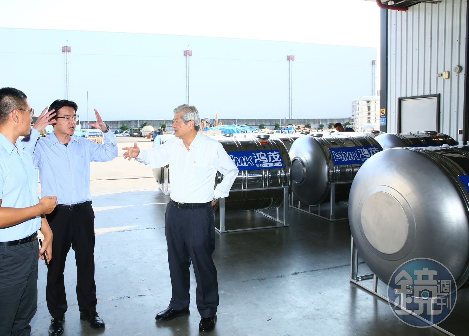 進入位於雲林斗南、才剛砸下12億元啟用的鴻茂工業新廠辦,眼神立即被數量龐大且壯觀、俗稱白鐵的大大小小不鏽鋼水塔海給震懾住,這各式各樣家庭、大樓、飯店、廠房用的不鏽鋼水塔,不只是鴻茂的起家產品之一,更肩負了企業二至三成的營業額。