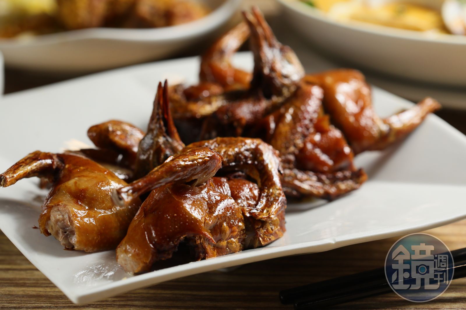 我們點的「薑蔥桶蠔煲」鑊氣十足、香氣逼人,光是醬汁與與薑蔥就夠味得能下一碗飯;椒鹽做法的油炸魷魚、九肚魚更是下酒好菜。印象最深的是箇頭小小的「紅燒乳鴿」,肉不多但極為入味,有令人吮指回味的魅力;「花甲蒸蛋」是台灣比較少見的海鮮做法,嫩口蒸水蛋充分吸收蛤蜊的甘美,老少咸宜。