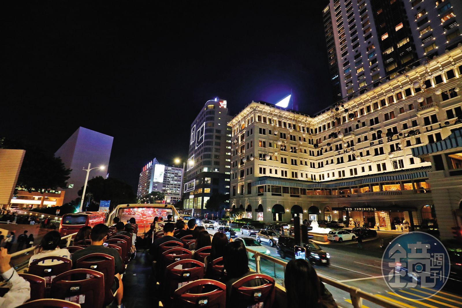 在1小時的車程裡,首先映入眼簾的是象徵奢華的半島酒店與燦爛的維多利亞港夜色,穿過栢麗購物大道前往繁華熱鬧的彌敦道,經過旺角、女人街、廟街等散發老香港風華的街區,還能欣賞到天際100,以及座落西九文化區的戲曲中心與香港故宮文化博物館,感受新舊互融的景致,途經名牌精品林立的廣東道與著名的天星碼頭。