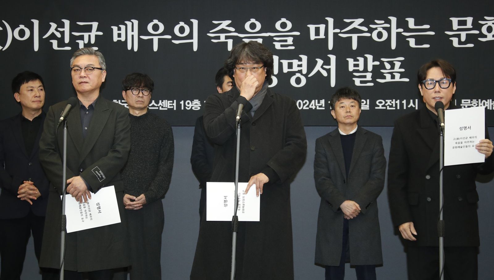 以奉俊昊導演為首,歌手尹鍾信、演員金義聖、崔德文、《權貴復仇》導演李元泰、《Sign》編劇張恆俊導演等人召開記者會,發表「文化藝術人對李善均死亡事件的訴求」聲明,集結了包括演員宋康昊之內等韓國廣播、電影與音樂在內的2千多名個人支持的聲明書。