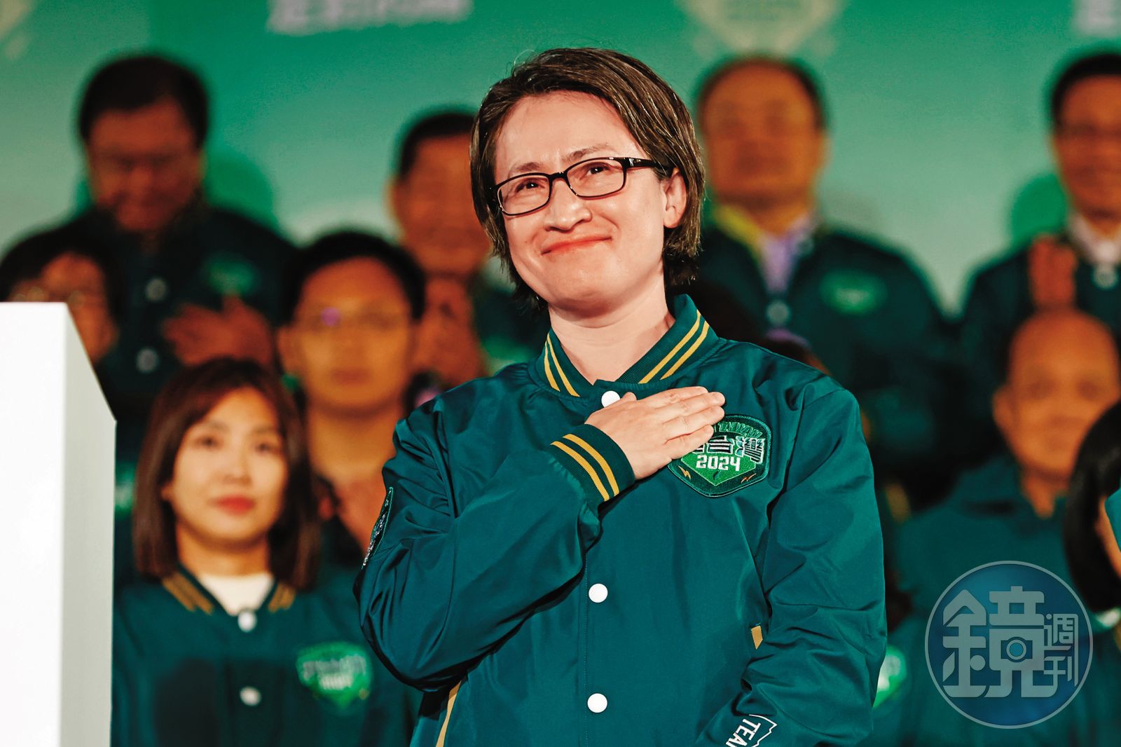 勝選這晚,支持者情緒沸騰。在帳棚內舉行的國際記者會上,蕭美琴全程眉頭緊緊皺在一塊。半個小時後,站在勝選舞台前面對廣大支持者,她也只是微微笑著,顯得冷靜許多。
