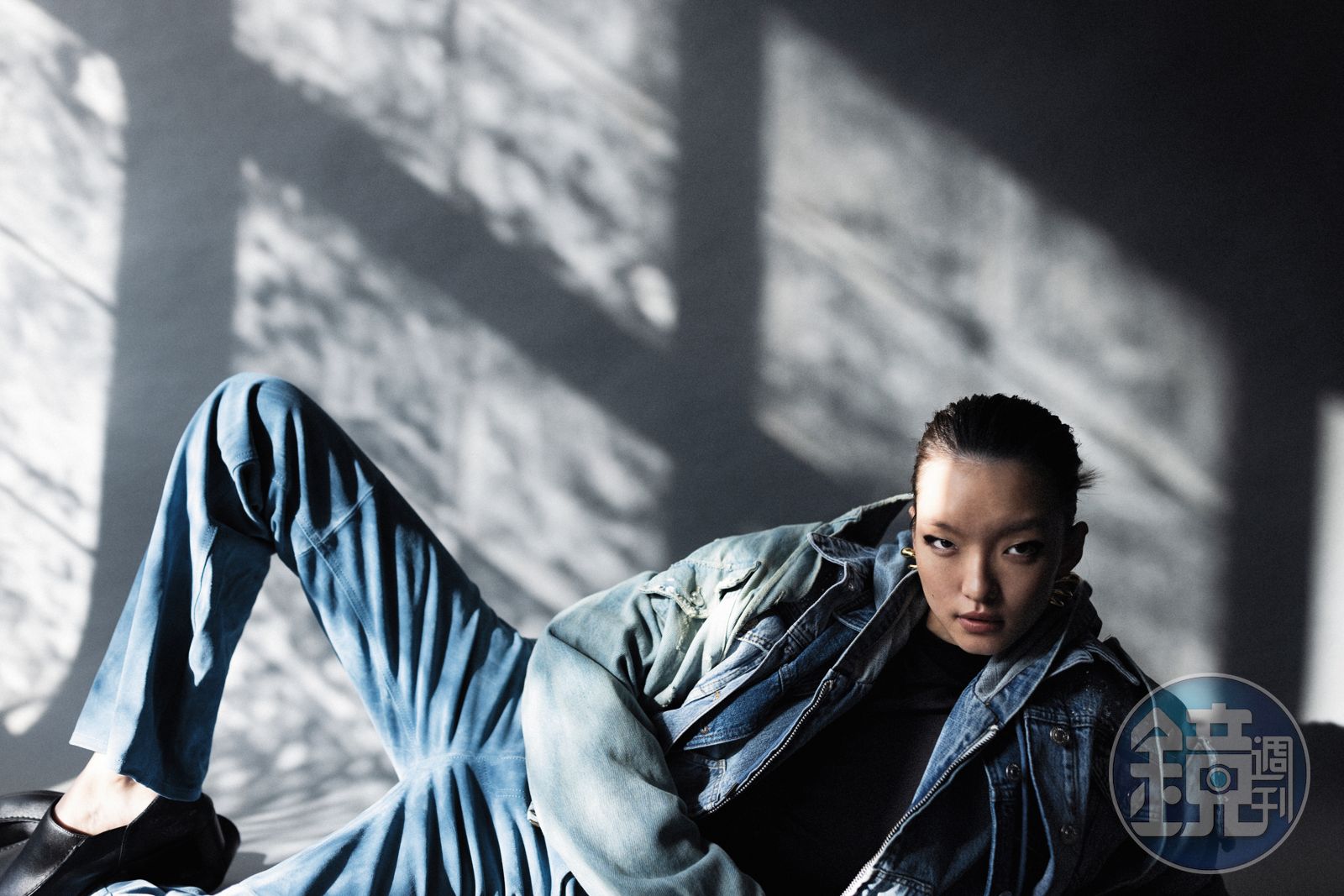 【靚時尚】丹寧翻身 丹寧外套(外層) NT$1,990 by ZARA;丹寧外套(中層) NT$11,690 by maje;丹寧外套(裡層) 價格店洽 by LOEWE;內搭黑色緊身上衣 NT$21,700 by BALENCIAGA;麂皮丹寧長褲 價格店洽 by Chloé;黑色皮鞋 NT$30,000 by BALENCIAGA;金色耳環 NT$650 by ZARA。 發布時間:2024.01.26 05:58 臺北時間