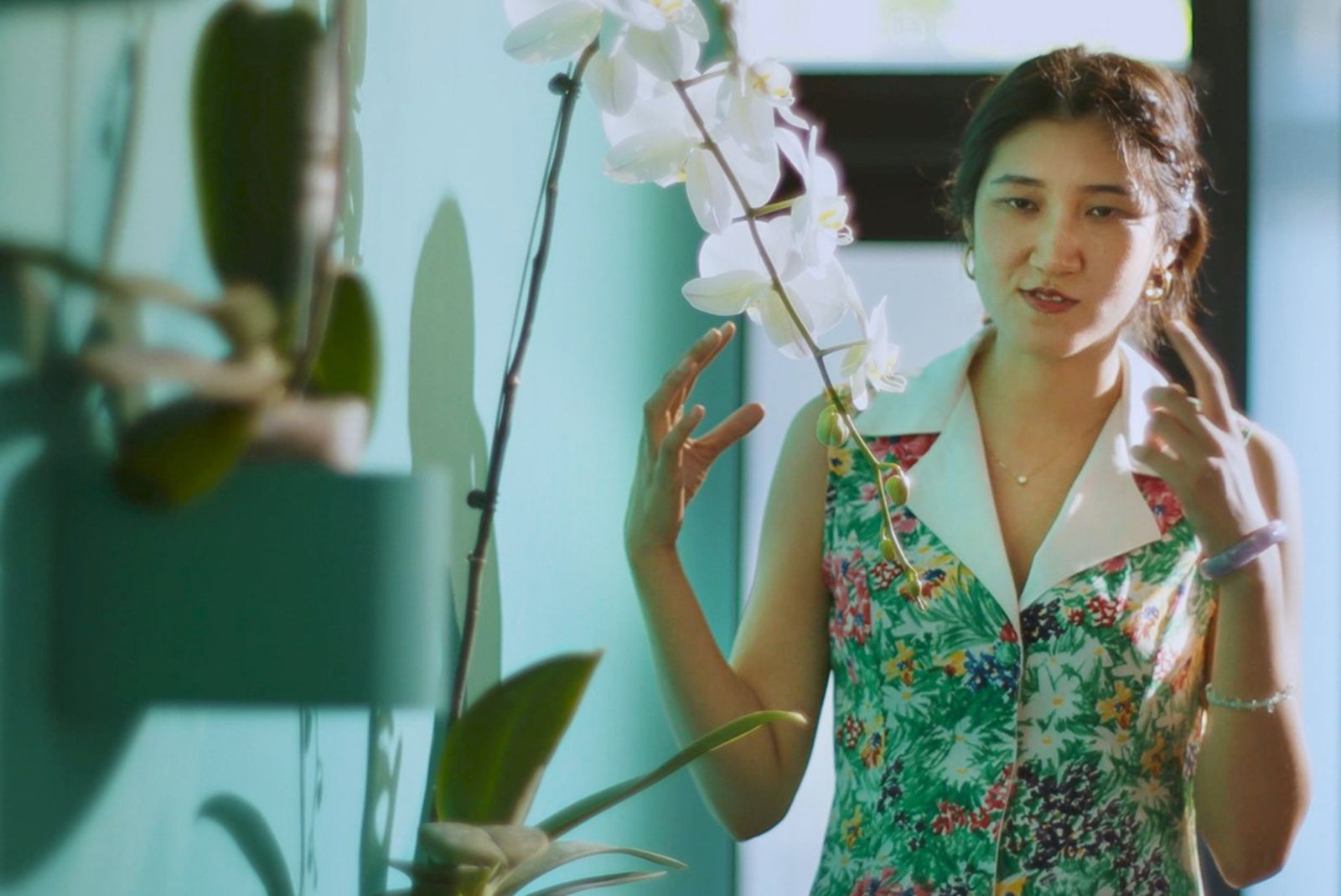 《藝術很有事》的鏡頭也跟隨倪瑞宏到《中華文化艺友社:遺留的中國文化》聯展佈展現場,作品《放著白蘭花的臥室》(2023)是她穿著喪服,坐在一間充斥白蘭花房間的油畫。這是父親告別式那天激發出的創作,白蘭花是親友致贈的治喪盆花,她卻拖2年畫不完,因與生命中親密存在的父親道別是艱難功課,也是與自己的依賴道別。