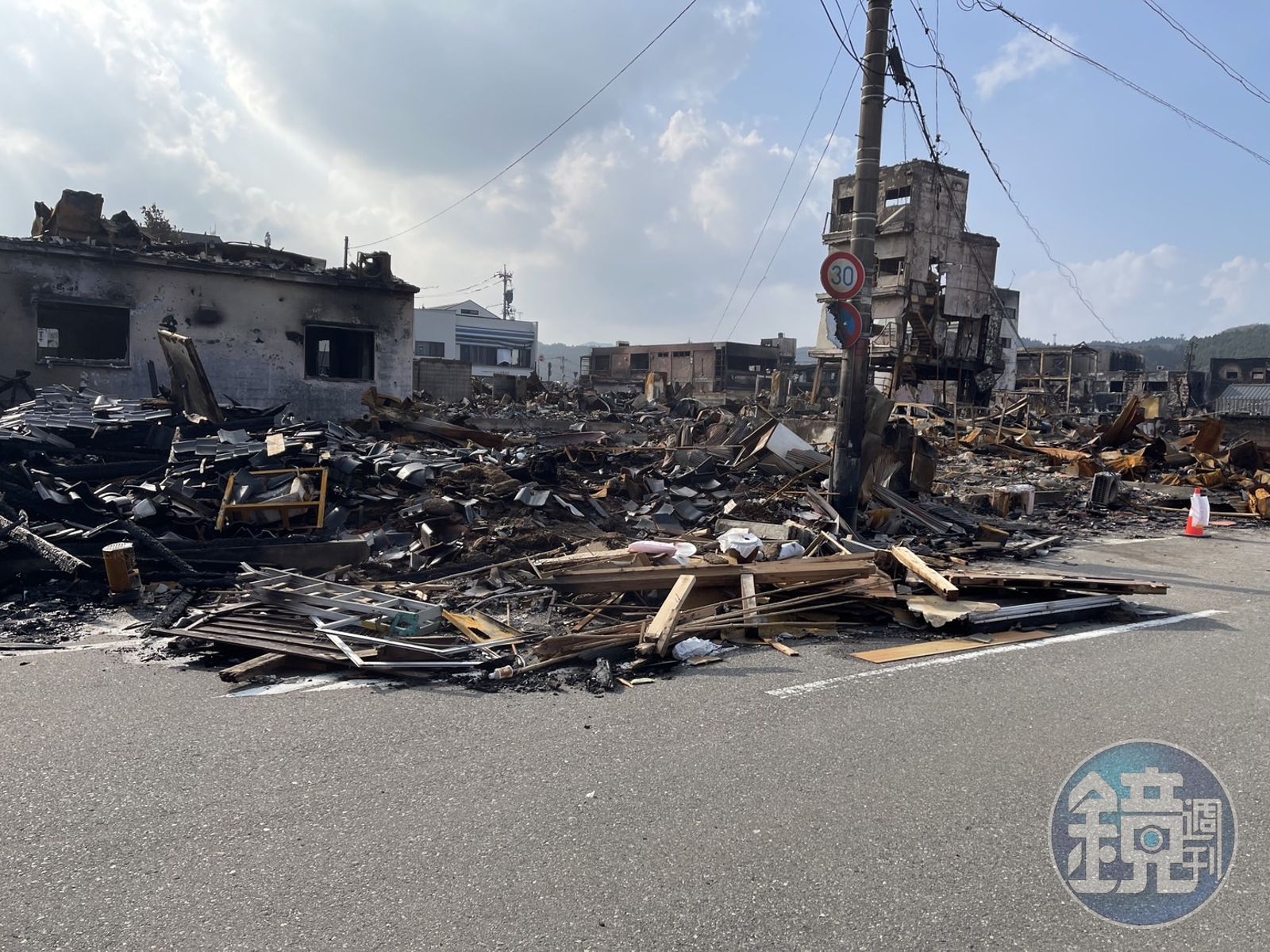 《鏡週刊》採訪團隊隨即包車,準備前往災情最慘重的輪島市,在行經七尾町路段時,只見道路柔腸寸斷,路面出現大小不一的裂縫,幾經繞路仍無法通過。
