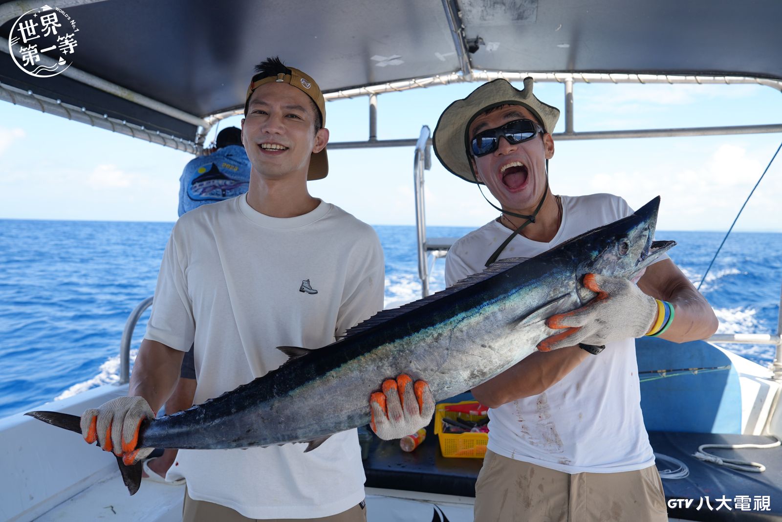 此行兩人也首次一起出海體驗。在上船前聽到達人分享過往經驗「風浪越大魚越大」,楊一展笑說:「所以吐的機率也越大。」但這趟海上行程不僅沒讓兩人暈船,還豐收漁獲、解鎖人生經驗,成功釣到130公分長的大魚外,還幸運地驚見難得的海豚群,讓楊一展猶如變回大男孩般。