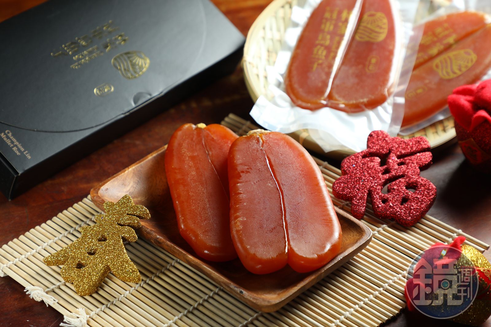 林篤毅的烏魚子選用養殖3年以上的烏魚,由於每天賦予蛋白質較高的飼料,他直言:「很多人認為野生的一定最好;但隨著養殖技術成熟,不僅可確保烏魚子品質一致,也能透過製程讓烏魚子保有濃厚油脂香氣,吃得到嚼勁與綿密口感。」再加上他研發的獨門「紮實」技術,特別訂製的長型磚頭,以機械化方式重壓,還有被視為祕方的精選岩鹽,造就林家烏魚子獨特的風味與口感。