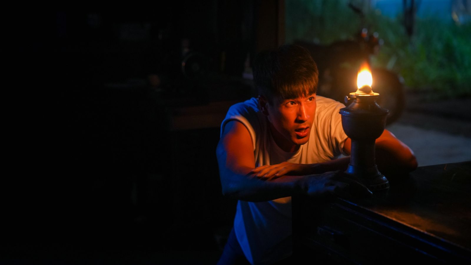 Nadech演大哥亞克為了克服鬼聲音,試圖火燒手讓自己清醒。(威視提供)發布時間:2024.01.23 17:24 臺北時間