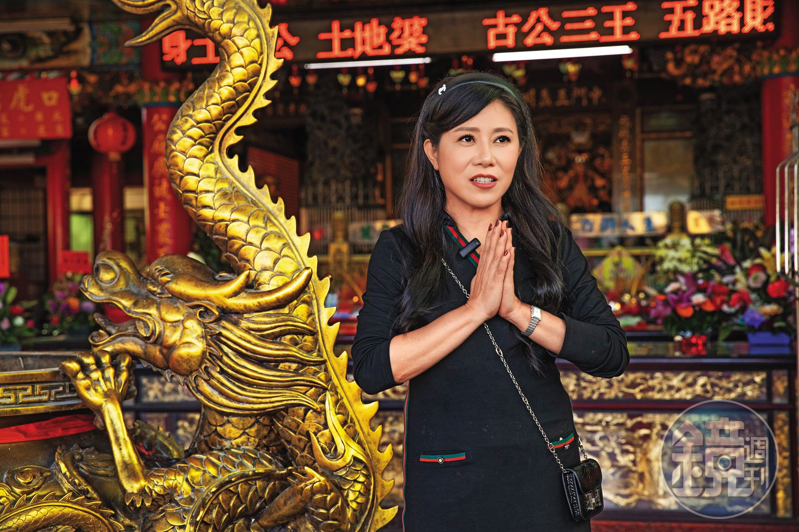 12層樓高的金身土地公,小彤站在公婆家中庭院就能與祂對望,彷彿一直被庇蔭著。回憶十多年前草創公關公司過程艱辛,小彤從公婆家轉個彎走進廟裡,「我合掌祈求土地公保佑我賺錢,賺了錢一定捐錢做公益。」沒想到,回台北的隔月,公司廣告代理業務當月營業額,竟衝破千萬元創新高,超狂業績也令同業嘖嘖稱奇。