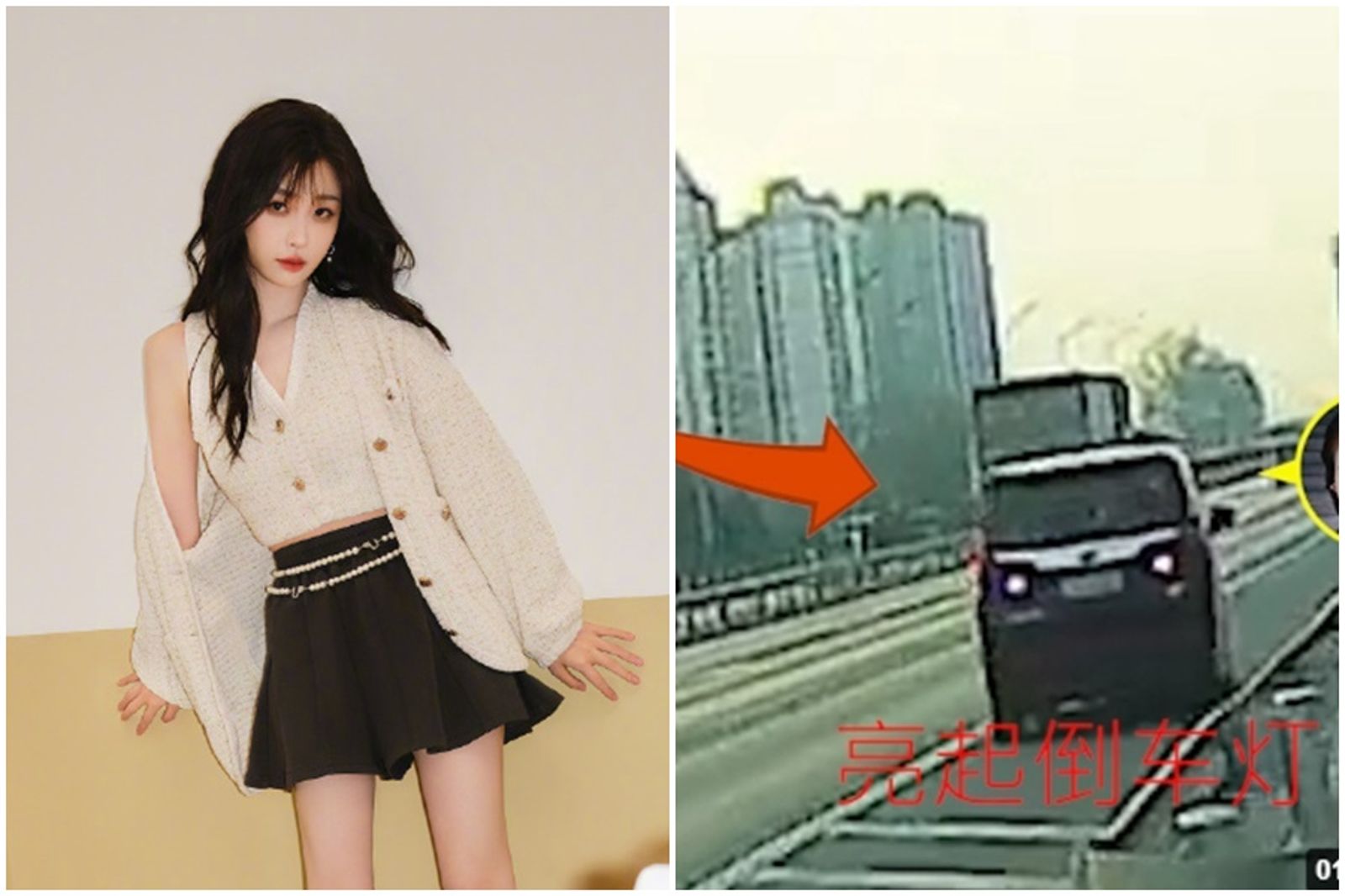 《仙劍六祈今朝》女主角虞書欣(左)搭乘的保母車日前帶頭在高速公路上違規,跟車粉絲也跟著依樣畫葫蘆。(左圖翻攝自虞書欣微博,右圖翻攝自推理君江小宴微博)發布時間:2024.01.25 17:09 臺北時間