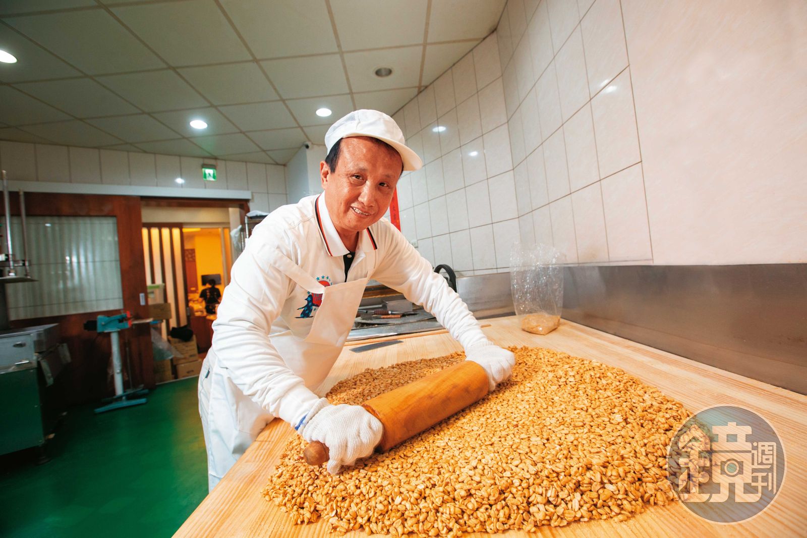 廚房如戰場,陳錦村待在裡面,表情一直緊繃,唯有介紹產品時,眉宇間才稍微放鬆,「我們花生都是雲林產的,比進口花生一斤貴40元,但不容易有黃麴毒素,而且選16號花生,比較輕盈,不容易有油耗味,政府每半年都來抽查一次。」67歲的他,國小跟著父親做花生糖,對於花生糖製程瞭若指掌,「外面很多花生會油炸後再裹糖,速度比較快,但這樣含油量太高,我們用70度低溫烘烤,有香氣又不會焦。」