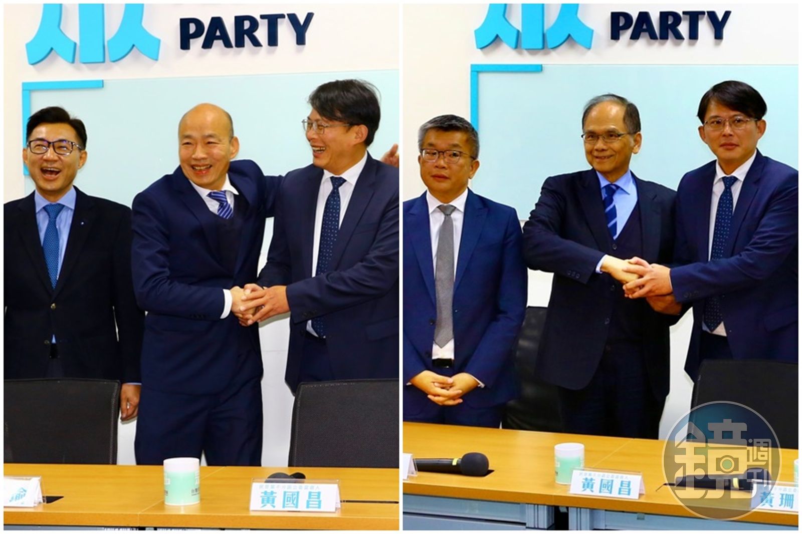 黃暐瀚在臉書上發文表達看法,不得不說韓國瑜是「熱絡氣氛技能點滿」的社交達人,儘管4年前有過恩怨,今仍帶著立委江啟臣,一路笑臉拱手進民眾黨團,弄得黃國昌開懷顫笑。