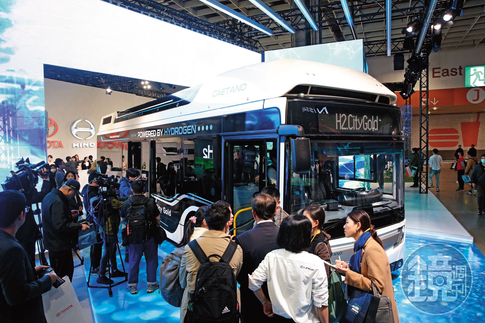 配合政府將氫能納入減碳路徑,並準備開放設置加氫站,引進氫能公車上路,和泰車今年初也在台北車展上,秀出首台氫能巴士-TOYOTA CAETANO H2 CITY GOLD。「填充氫氣只要10分鐘,續航里程就可達400公里,非常適合台灣。」親自出席揭幕活動的蘇純興說。