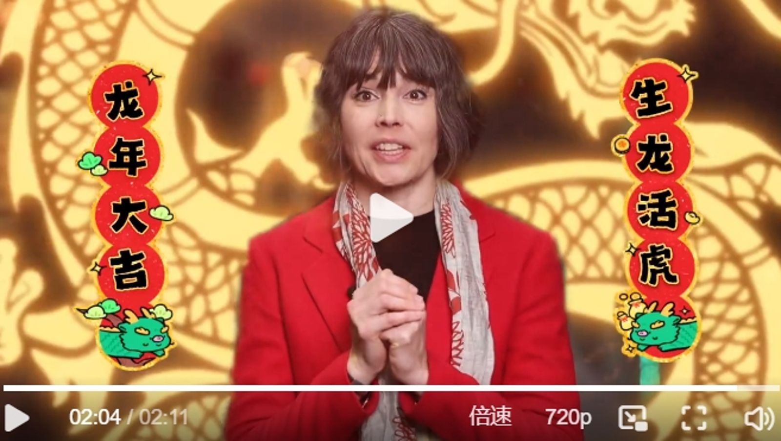 曾蕾秋也提到,還有費城交響樂團中國巡演、伯恩斯大使到訪武漢、上海、成都、重慶等十多個城市出差,還有她自己也越來越習慣在北京的生活,兩個兒子與當地小朋友流利說中文,都讓她印象深刻。2024年是美中建交45週年,曾蕾秋也期待在龍年可以跟大家有更多互動,並祝大家龍年大吉,生龍活虎。