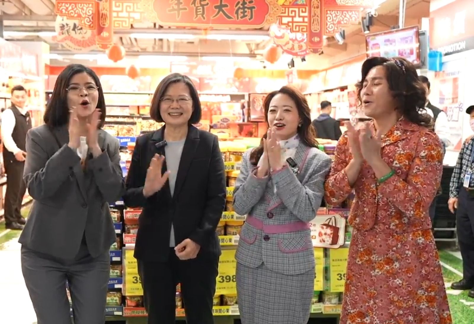 許多民眾都會在過年前夕前往大賣場或傳統市場採買年節用品,而在今年農曆年前,蔡總統也久違地前往大賣場購買年貨食品。為了讓總統更了解國人朋友的喜好,本次行程邀請到,以風格生活化著名的美食YouTuber「陪沈團」,陪同總統一起逛大賣場的年貨大街。而本次前往的賣場位於西門商圈周邊,許多國際旅客來台後常會在該賣場購買伴手禮回國。在當日行程中,也有國際旅客正在逛賣場,看到總統時也驚喜地與總統打招呼。