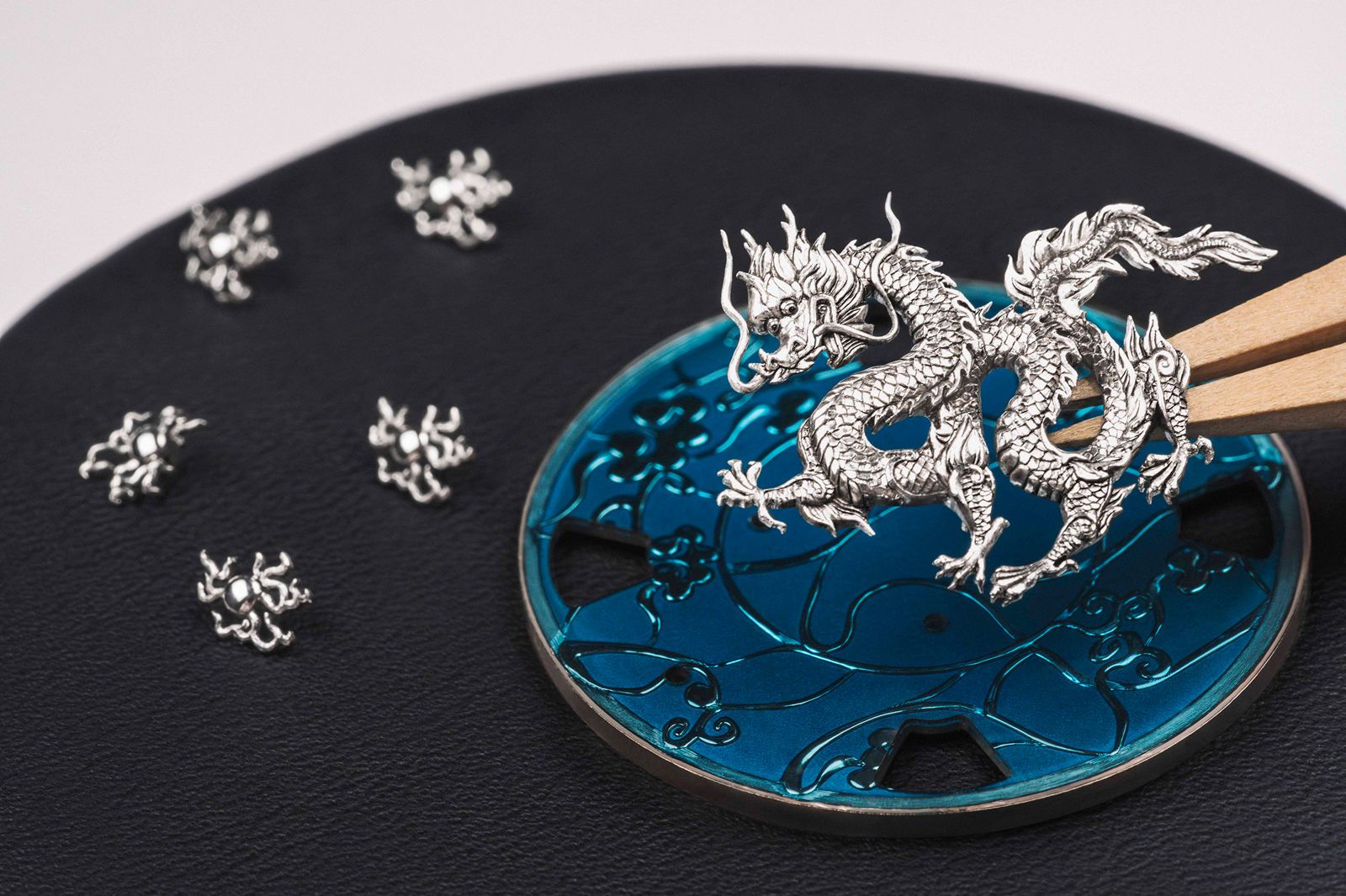 蕭邦一直以來都以「蒔繪」作為生肖錶的主要裝飾技法,所謂蒔繪(Urushi)指的是漆繪工藝的一種,以K金粉等金屬粉末來點綴漆繪,勾畫並突出漆繪的輪廓,達到微繪的效果。今年的蕭邦龍年錶同樣委託百年歷史的日本傳統蒔繪工藝代表:山田平安堂工坊製作,由漆藝大師小泉三教繪製,每一枚面盤製作工序不少於20小時。最終創作出的姿態,交替變幻火紅、翠綠與金黃色澤,踞於雲霧之巔,盡顯東方傳統祥龍意象。