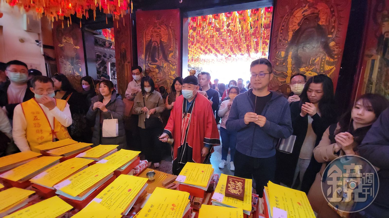 松山霞海城隍廟總幹事陳美雲表示,傳統的初四家中的迎神,迎的是灶神,初五才是迎財神,財神廟都會舉行道教科儀,由道長以傳統道教儀式請財神入廟,民眾參拜時,可先找道長補財庫,領發財金,再跟虎爺換水錢,拜完可以摸一下財神爺的鬍鬚,增加自己的財氣跟運氣。