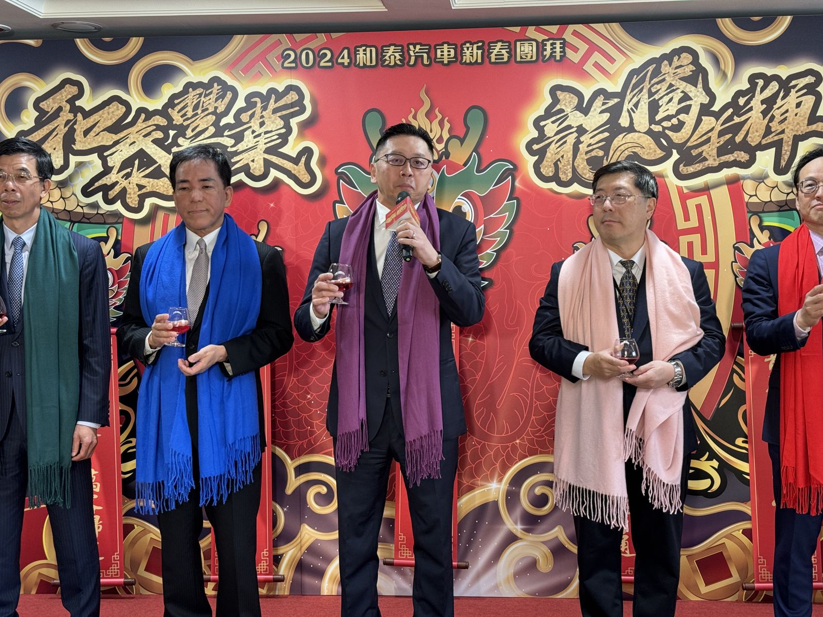 在黃南光致詞後,總經理蘇純興則率領一級主管,每個人拿著祝賀春聯一字排開,希望龍年和泰車能夠鴻圖大展。「一早看起來大家很開心熱鬧,今年一定也會很旺。」蘇純興笑著說。