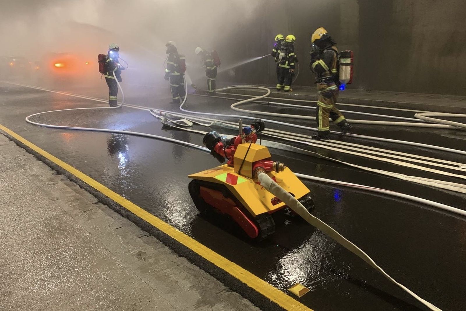 林右昌說明,消防人員救災須面臨許多風險及不確定性,運用科技救災,可降低意外的發生,同時兼顧火災搶救的任務需求,像是救災無人機,可應用於山域、火場及水域搜救及即時監控,提供最新的災區影像,讓指揮中心作為決策參考,也能讓前進重災區的救難人員掌握前線狀況;另在執行化學工廠及長隧道災害、核生化、毒氣洩漏、高科技廠房及鐵皮建物或資源回收廠火災等危險性救災任務時,救災機器人可第一時間代替消防人員深入災害現場,除能精準偵測危害氣體及蒐集火場內部資訊外,也可協助火場周界防護射水,節省人力運用,目前全國消防機關總共配有無人機261台,救災機器人34台。