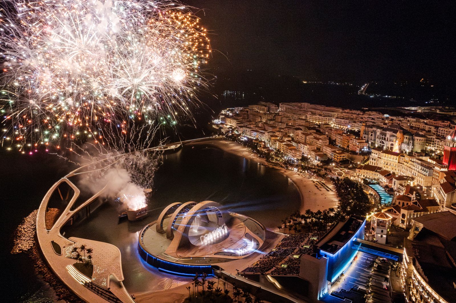 「海洋之吻(Kiss of the Sea)」由法國ECA2總部位於巴黎、曾在全球17個國家製作多媒體秀的設計公司獨家打造,耗資數百萬美元,採用最先進的技術,在一千平方公尺的巨大海水屏幕上呈現,是世界上最大的海上劇場。