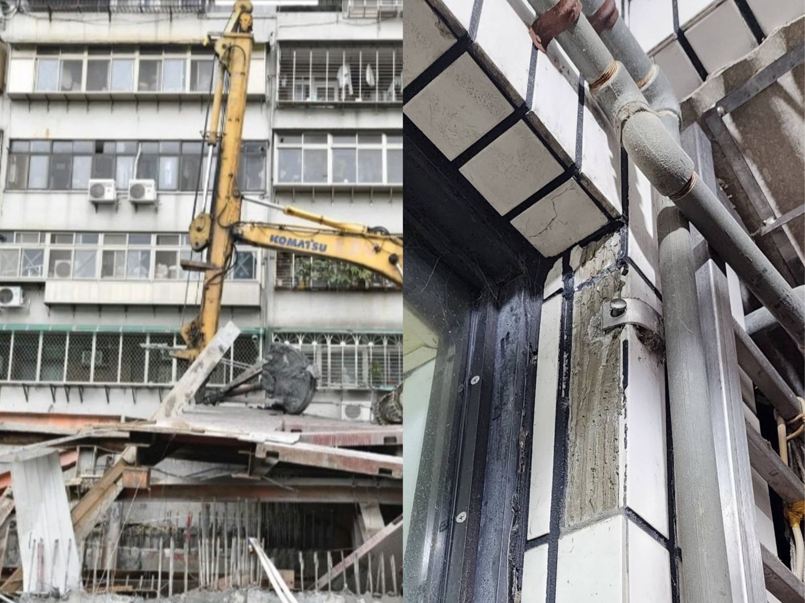 陳怡君表示,大直基泰周邊鄰房損鄰案經查三大公會報告,既定標的共計198戶,須賠償169戶,而周邊損鄰需賠176處,金額共1600多萬,住戶手上都有三大公會做出來的損鄰鑑定報告及財損金額,如今賠償金額沒拿到之外,住戶的房子也持續漏水,房子裂縫也越裂越深且也一修再修無法修復。