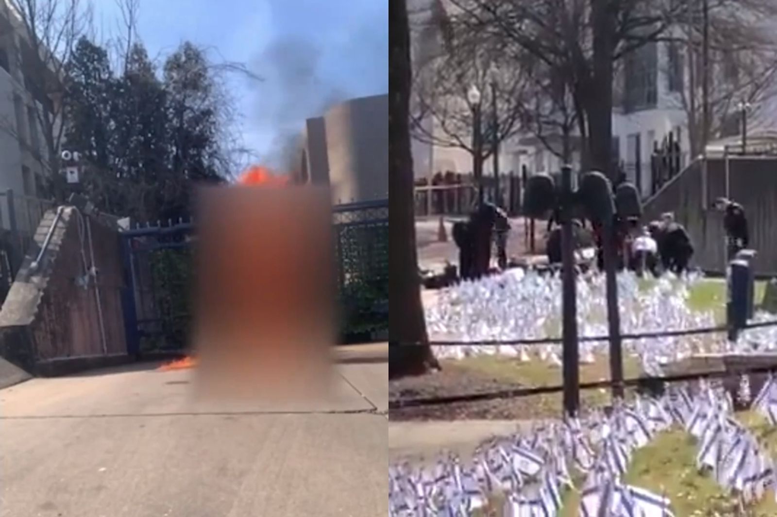 影片中可見,他將錄音裝置放在地上,並且往身上潑灑液體後點火,且反覆高喊「自由巴勒斯坦(Free Palestine)」。儘管發現的員警馬上用滅火器試圖撲滅火焰,但男子最終還是倒地,事後被送往醫院急救,目前仍處於危急狀態。
