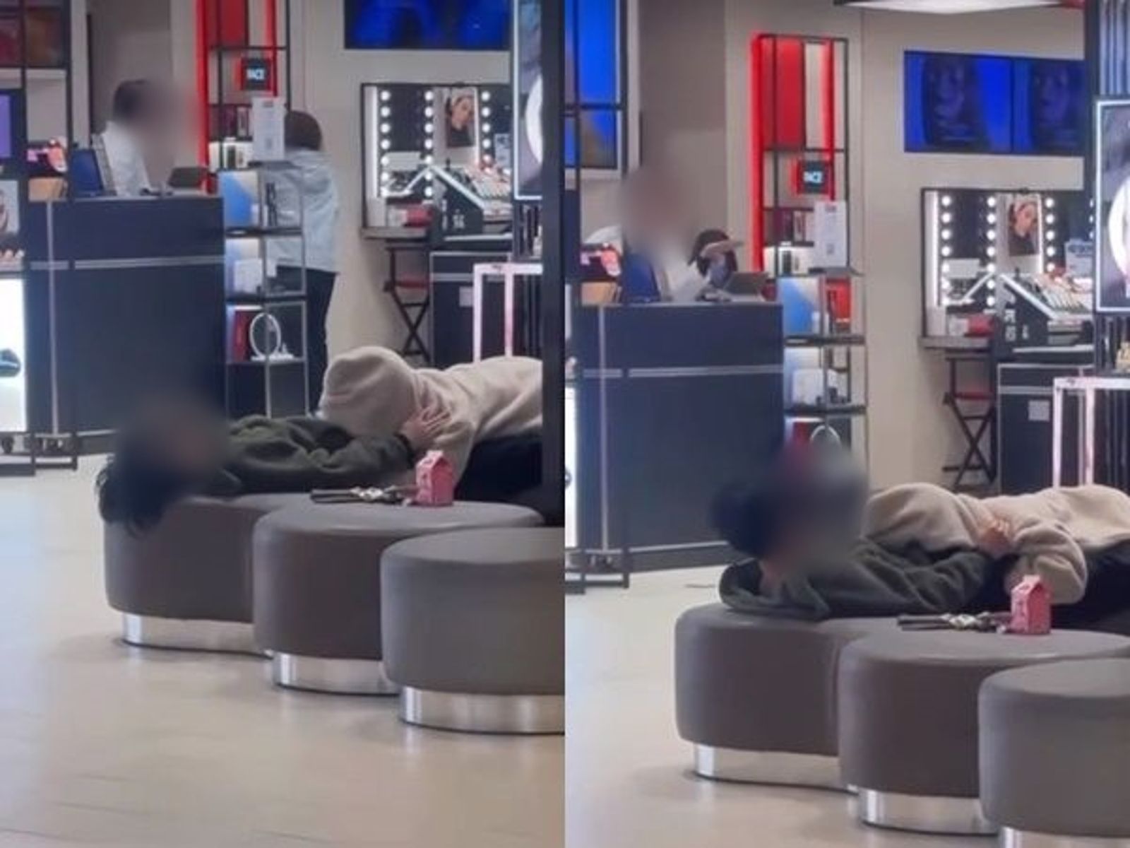 一名網友在臉書社團「爆廢公社」上傳1段影片,為一對年輕男女在百貨公司內忘情吞吐,男子仰躺在沙發區,女子則穿著帽T趴在對方身上,女方的頭部在男子的下體間游移,男生則時不時抬起頭察看,偶爾將手伸進褲中。 目睹全程的櫃姐拿手機拍下影片,在影片中驚訝地表示,「她現在是在吹吹嗎?」「太扯了吧,後面的人也在拍耶,阿彌陀佛」。 文章曝光後,影片中年輕男女大膽的行為隨即掀起網友討論,「百貨公司大吃一口」「好想過去訪問」「現在年輕人真是開放」;還有網友認出影片地點,表示為桃園市南崁區的百貨公司。