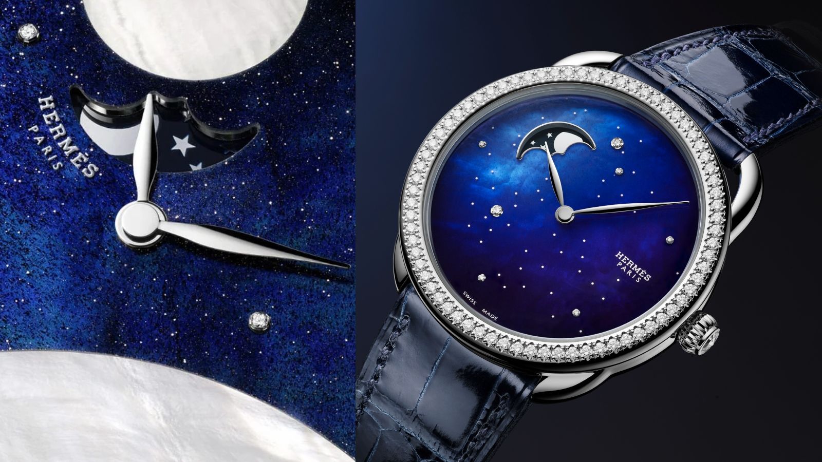 去年的Watches & Wonders錶展,愛馬仕鐘錶創意總監Philippe Delhotal百忙之中抽空接受我們採訪。在訪問結束閒聊語畢之後,離開前我跟他道謝說了句:"Thanks for your time." Philippe做了個紳士行禮的動作,微笑著說:"My time is your time." 多麼美好的為訪問畫下詩句般的句點!這也許就是愛馬仕做起手錶來,總是帶有幾分浪漫元素在的理由,尤其是像月相這種對於一般人的日常使用來說,相對沒那麼必要的功能,愛馬仕都還是每每做出新意,彷彿像是可以看到和我們不一樣的天空似的,用自家的語法說著關於月相的故事。