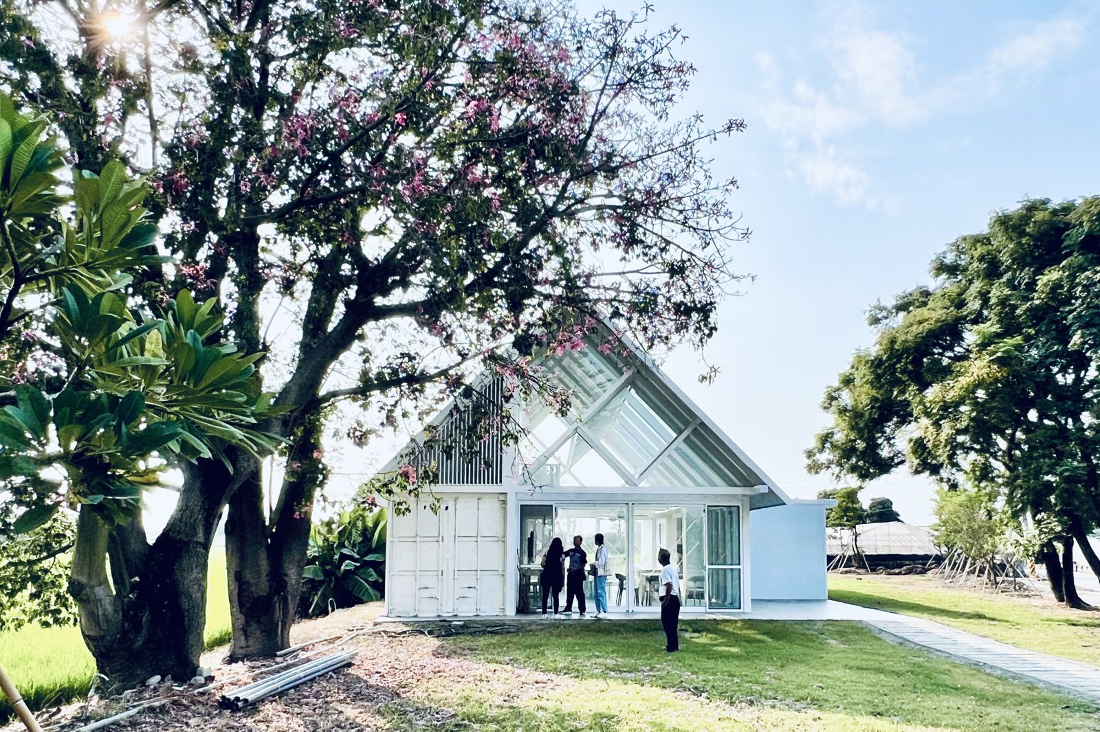 與在地高度連結是小書屋的一大特色。學校向負責設計的逢甲大學建築專業學院提出四大訴求:空間需作為游泳、童軍、閱讀等多元課程使用;設計上則需結合在地人文元素。為此逢甲大學建築系的師生們不但夜宿媽厝國小,更實地走訪深入學區,發現社區保有許多三合院古厝,主要的經濟則是依賴種植溫室葡萄,因此決定以「溫室」結合「三合院」兩大產業人文意象,建物選用白色為主色調,以合院格局搭配挑高、透光的設計,成為紫葡小書屋的特色。