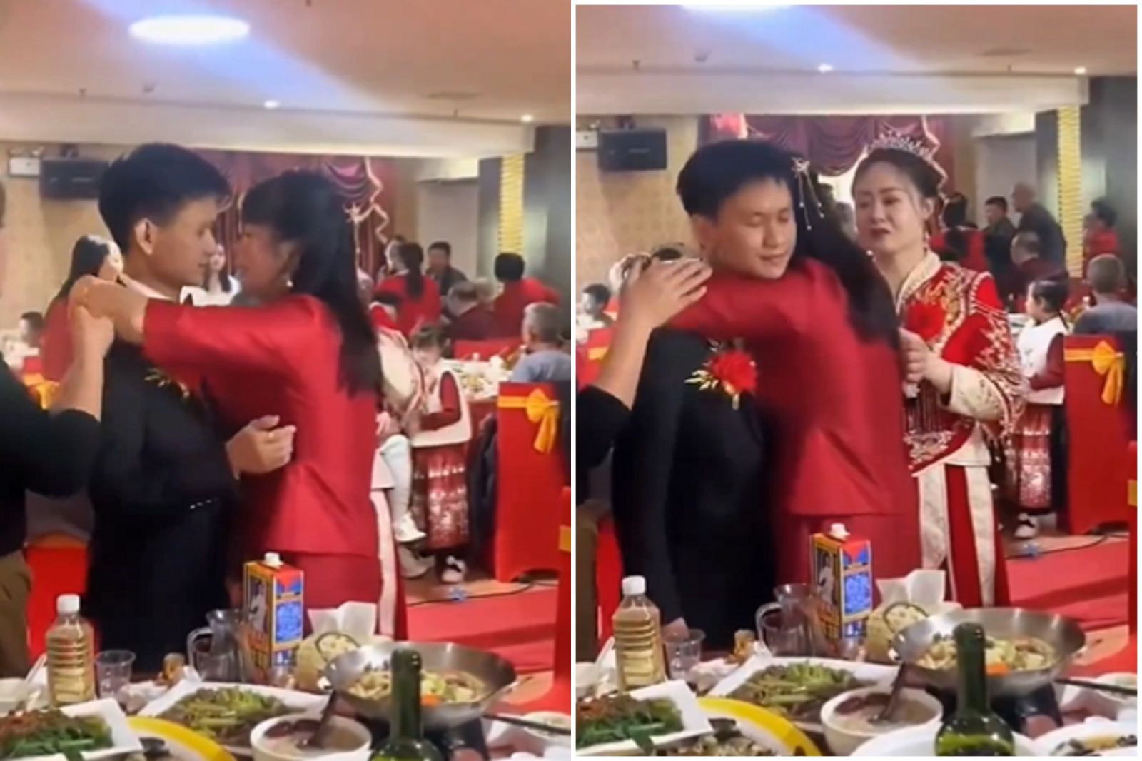 據悉當時岳母正在和新郎寒暄,並囑託新郎一定要好好照顧自己的女兒,隨後更直接緊抱新郎,還越抱越緊。站在旁邊新娘,一直安慰著媽媽,還有一名女賓客,也不斷安撫這位岳母,讓她不要抱得這麼緊。 這段影片隨後引起網友們的猜想,就有網友說:「你看那新娘的表情,好似在說『媽!好了啦』。」、「怎麼感覺是女兒奪走她的真愛。」、「岳母是準備吃小鮮肉了嗎?」、「我跟新娘一樣,都看了心驚膽跳!」