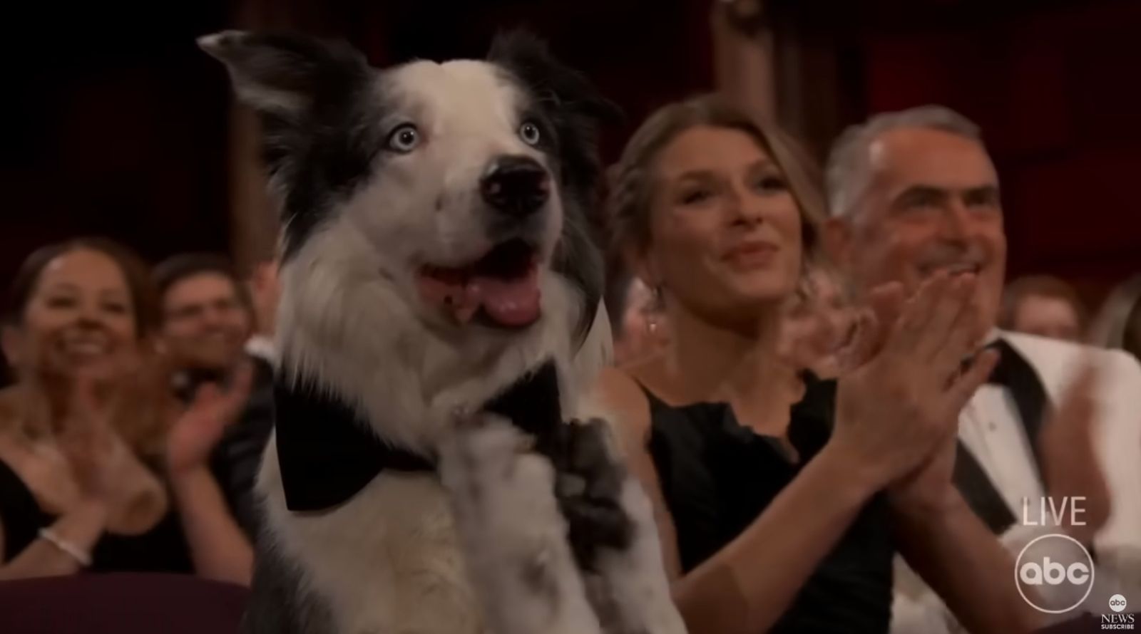 這隻為小勞勃道尼鼓掌的狗狗叫做梅西(Messi),他可不只是哪個明星特別帶來頒獎典禮獻寶的萌寵,而是本次入圍最佳影片的法國電影《墜惡真相》的演出卡司之一。