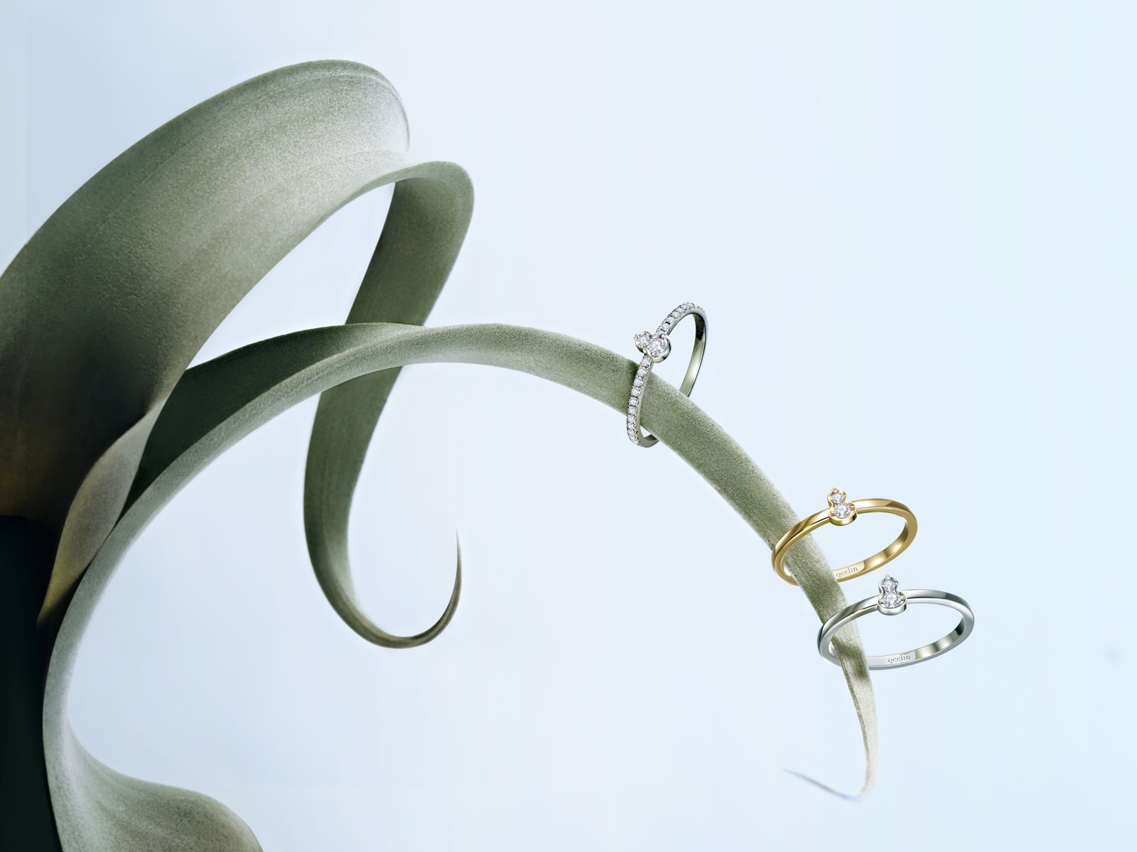 Wulu Mini Solitaire系列18K白金鑽石戒指及18K黃金素圈鑽石戒指。NT$27,000(QEELIN提供)