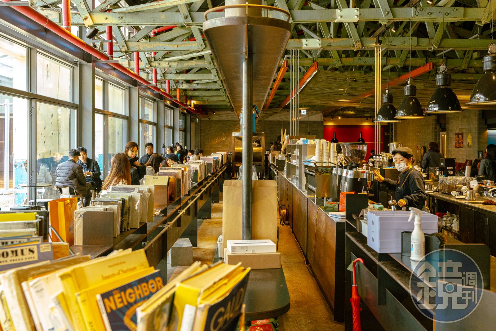 這天我們一走進F1963,便被撲鼻而來的咖啡香吸引,韓國知名咖啡連鎖品牌「Terarosa Coffee」進駐此地,也展現不同於一般店面的藝術性。一進門就可看到藝術家孫夢珠用電線完成的作品,整個空間保留了原本的鋼架、當時的發電機和繞線筒,咖啡吧和桌子都是用工廠原本的舊鐵板改造而成,讓人一眼想起曾是韓國經濟成長重要推手的工業歷史。