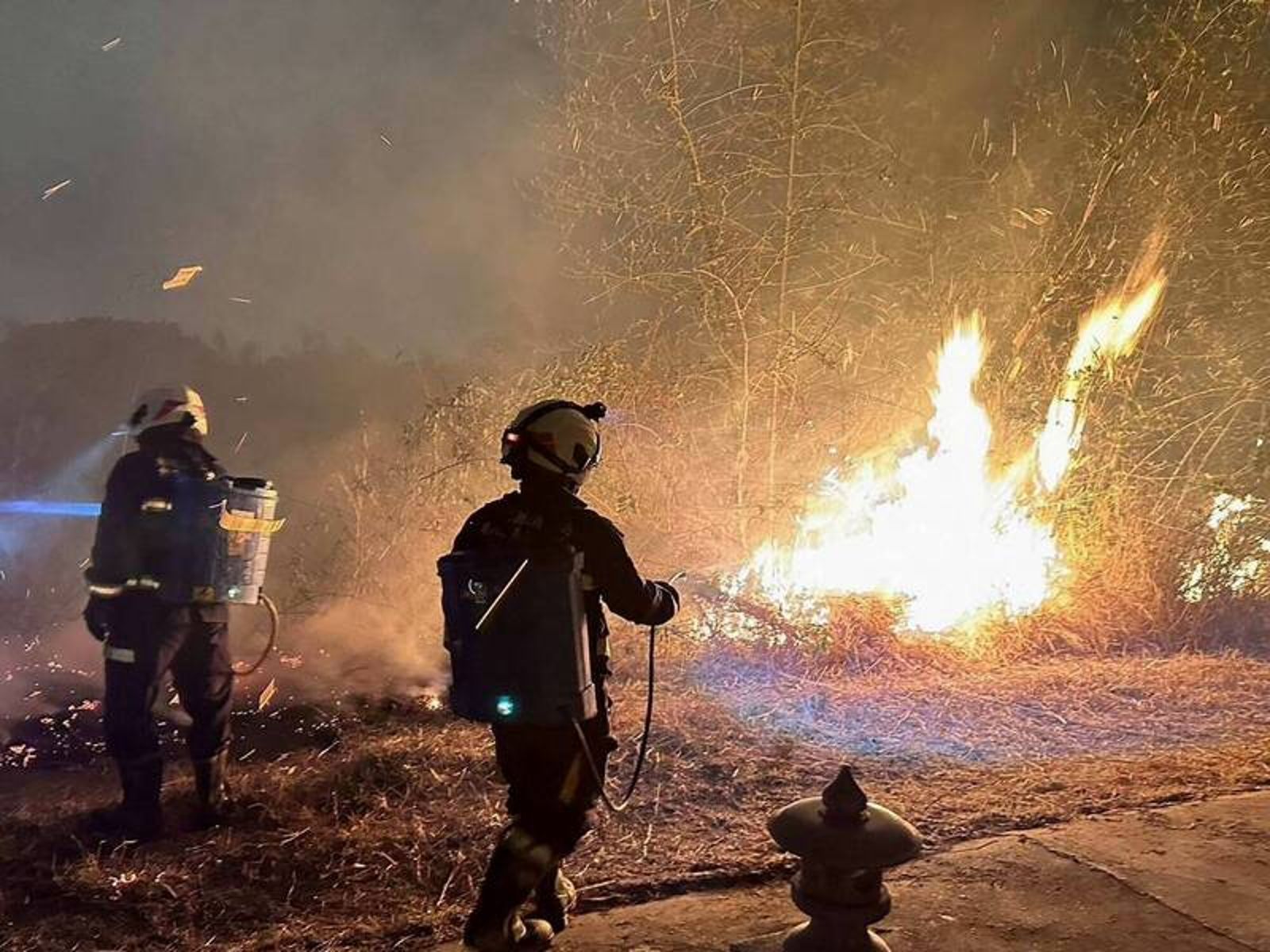 昨天下午4點多,彰化八卦山公墓再度傳出火警,消防局立刻調派彰化、花壇、東區等消防分隊前往灌救,由於火點散佈在廣闊的山林間,消防人員必須先部署多條水線,阻止大火往山區蔓延,再逐步縮小燃燒範圍,一直到晚間八點多才撲滅大火,為了避免山林殘火復燃,昨晚也派遣兩部消防車在公墓附近待命,以防萬一半夜再度起火。