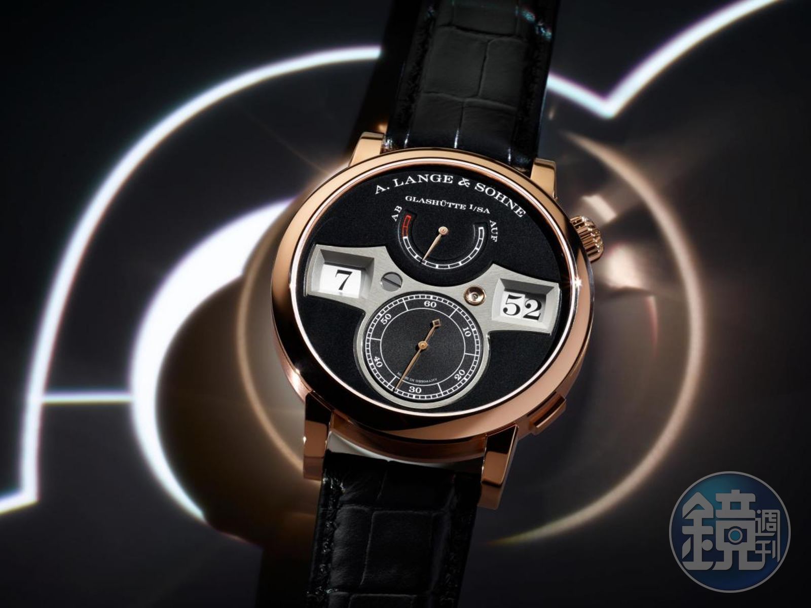 朗格Zeitwerk跳字錶,錶殼直徑41.9mm,厚12.2mm,有18K玫瑰金款配備黑色錶盤,以及鉑金950款配備銀灰色錶盤,共兩個款式可供選擇。