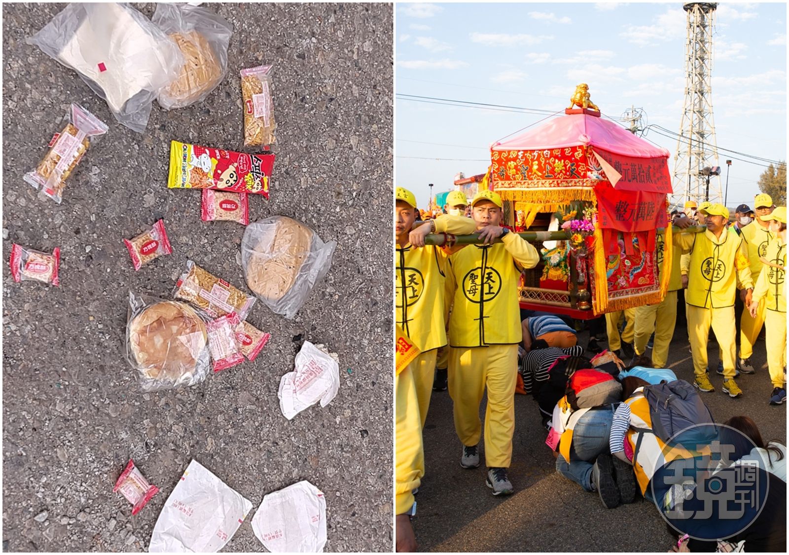 今天有網友在臉書社團「白沙屯媽祖全球徒步聯誼會」po文,曬出數張照片,可見許多發放的食物連動都沒動過,就被人隨意丟棄在路邊,原po補充提到,「這是在路邊看到糟蹋食物的嚴重情形…太可惡了應該是開車拿取後,不吃全部丟地上。」