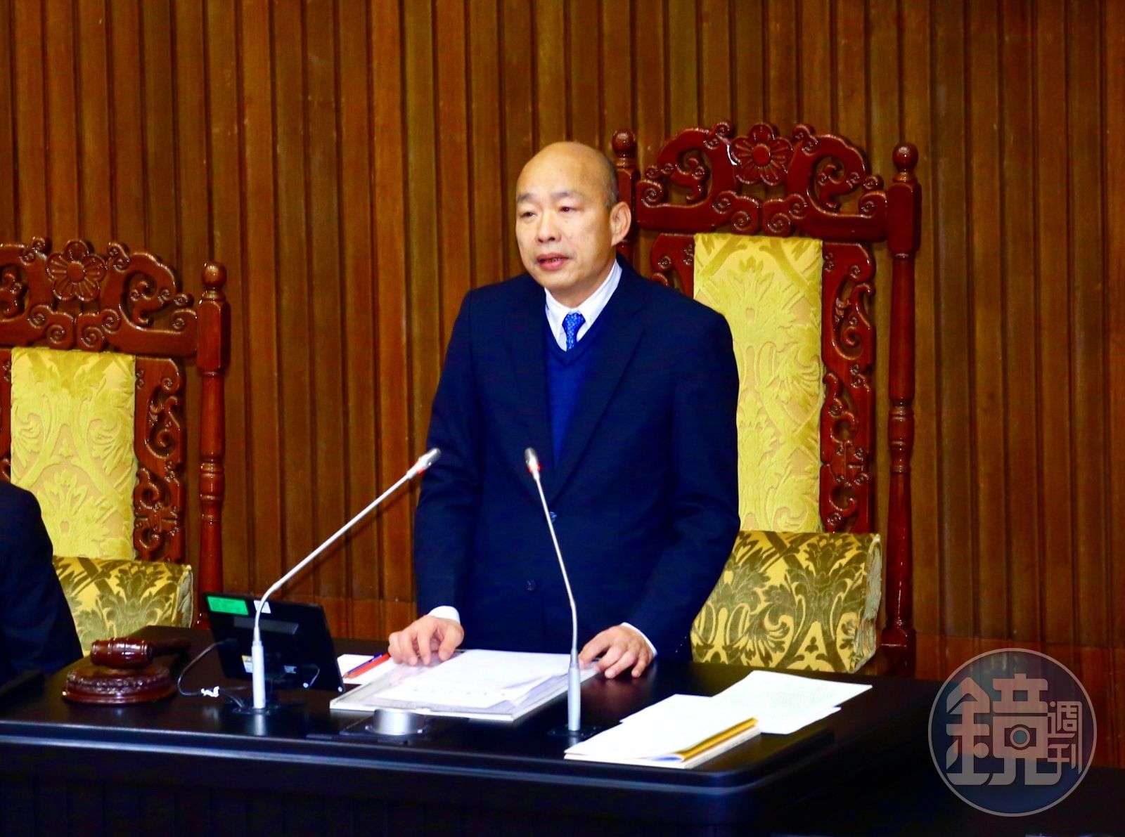 綠營有意從議事規則下手,站穩韓沒收質詢的立場。但本刊掌握,立法院最新出爐的立法院公報,相關院會紀錄早已記載,韓國瑜在2月20日主持院會時,就曾公開做出兩項關於立委質詢有關的宣告,其中最關鍵一項就是:「依登記的次序輪到質詢之委員如不在場,以放棄質詢論;採用聯合質詢者,其中質詢委員如不在場,也是以放棄質詢論。詢答時間不予併入。」顯然,韓最後以連續唱名方式,來處理應到但未到的立委,有跡可循。