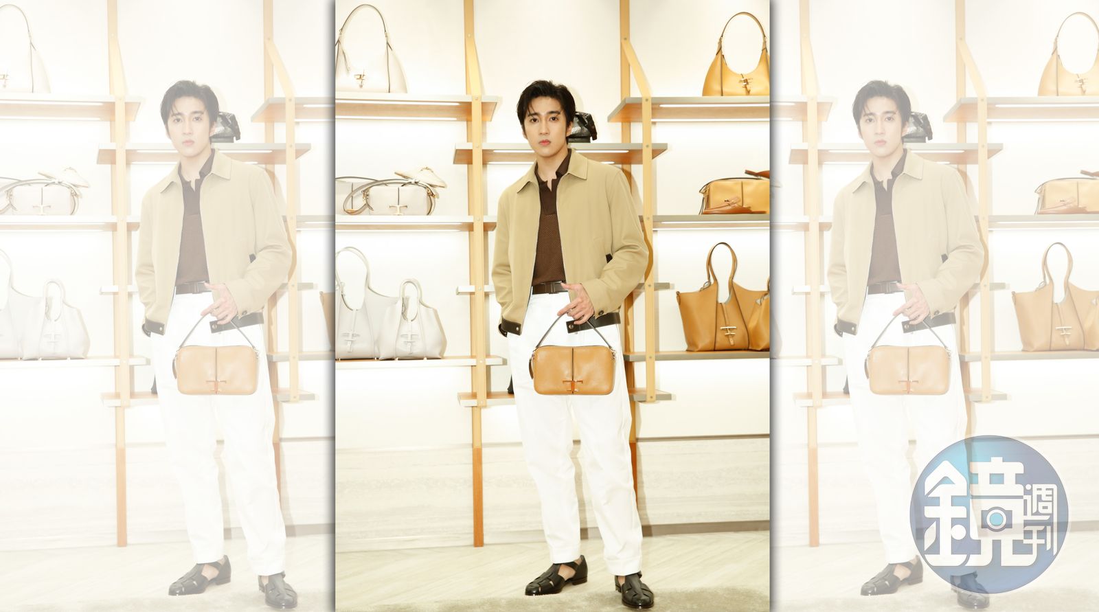 問他在這一季中,最喜歡的單品是什麼?他不假思索地推薦了手上拿著的T Timeless相機包,他說:「如果要選禮物送人的話,原則就是考慮自己上手時好不好看,因為大部分時候都是我幫她(焦凡凡)拎,這樣的話,我幫她拎包很適合。」