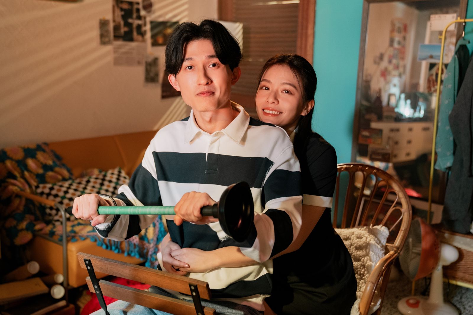 主唱王於MV中飾演黑道老大,和宋芸樺求掏耳朵。(何樂音樂提供)
