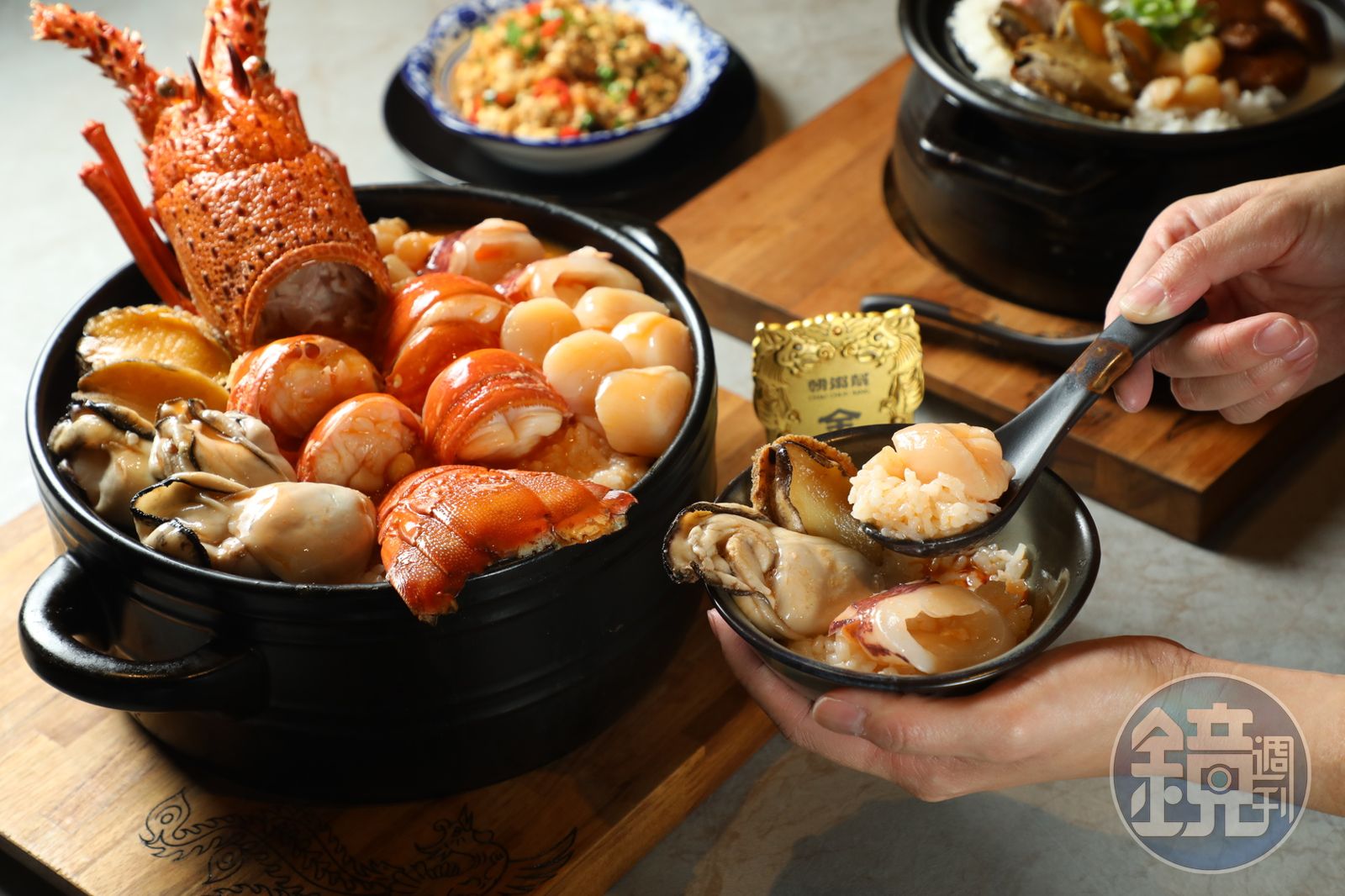 由金龍粥延伸而來的「龍蝦海皇粥」,內有超搶戲的巴西龍蝦、北海道生食級干貝、冰鮮中卷及鮑魚,澎湃食材滿足視覺及味覺。以銀鳳粥為粥底的「鮑魚土雞粥」,在原本的粥高湯裡增添北海道干貝、鮑魚和珠貝的鮮甜,再賦予有嚼勁的國產去骨土雞腿肉,簡直是粥品的海陸大餐。