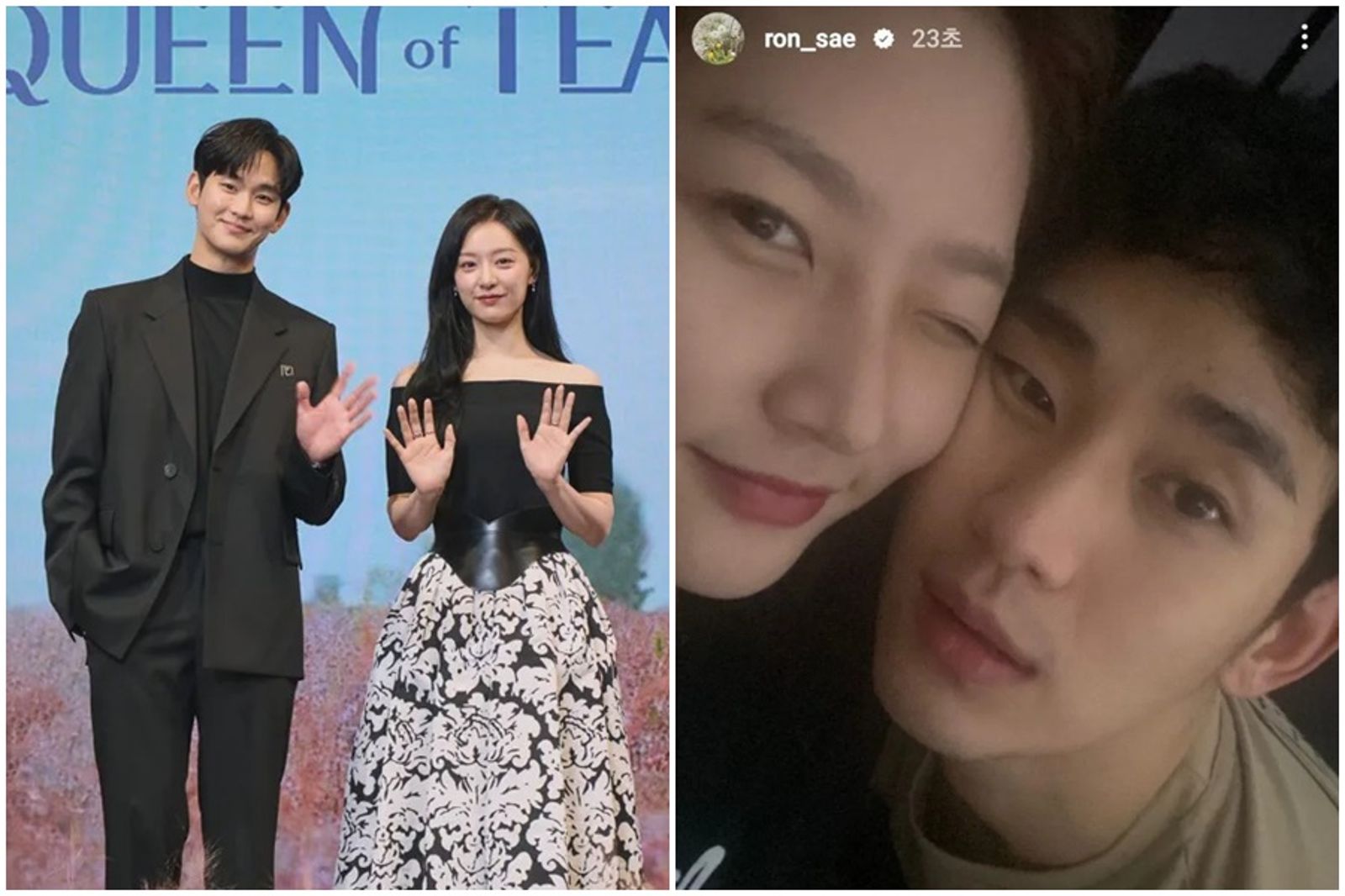 金賽綸昨晚突然在Instagram限時動態發出與金秀賢的親密合照,只見2人臉貼臉,金秀賢的眼神還有些許迷茫,感情似乎相當不錯;儘管金賽綸23秒後刪除,但手速更快的網友們早已截圖並上傳至網路,引發熱議。