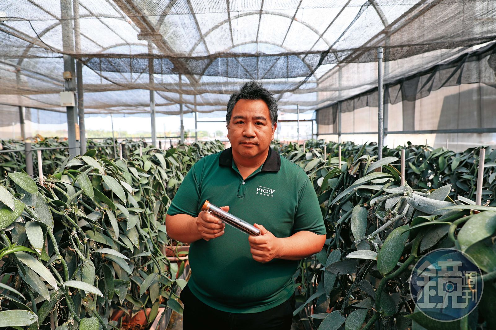 陳育旗之外,還有其他農民也在嘗試,實現自己的農電共生願景。50歲的林桐榮,是成功在光電溫室內栽植香莢蘭的農友之一,他本來是屏東科技大學農學院食品加工系講師,2015年取得國發會天使基金,創業成立格園種苗公司(格園社會企業),與桃園區農業改良場合作技術移轉,開始培育香莢蘭種苗。2020年,農業部加嚴農電共生審查,光電業者四處找尋在光電板下易於存活種植的作物,找上林桐榮,「真的是誤打誤撞,原本只是要賣香莢蘭種苗給他而已,卻發現他不會種。我只好說:『那我幫你種看看。』」林桐榮說。
